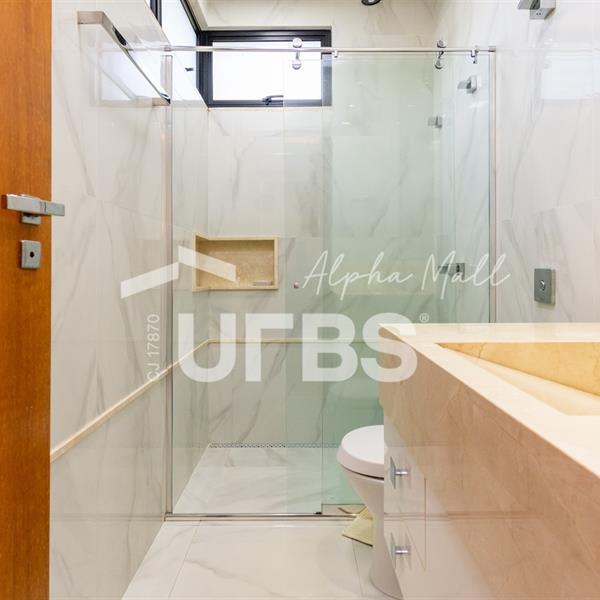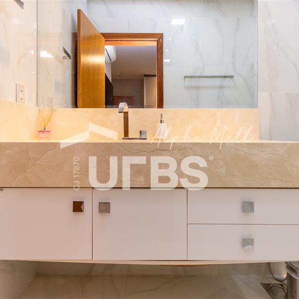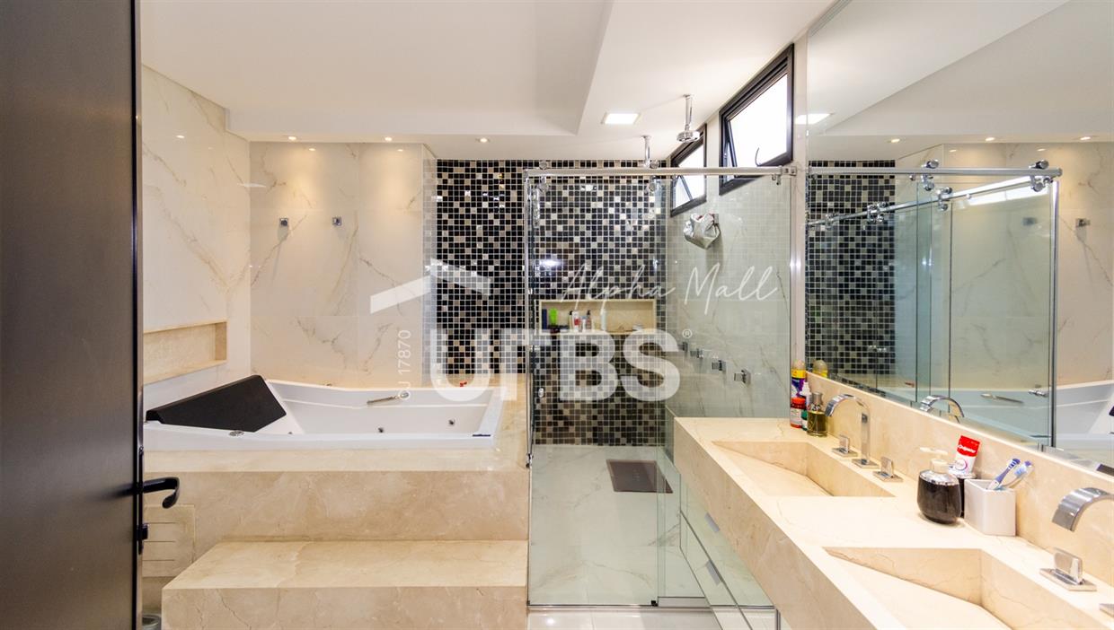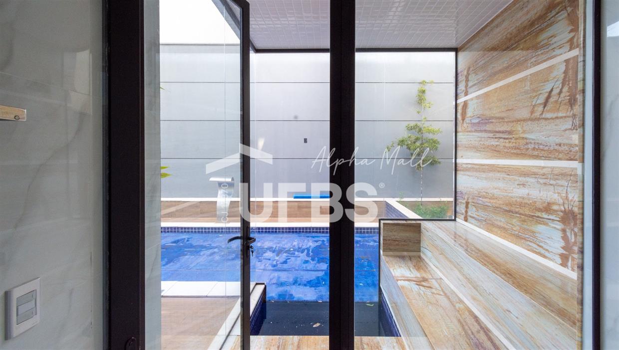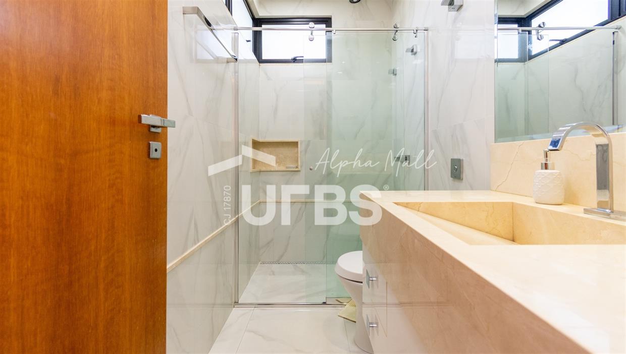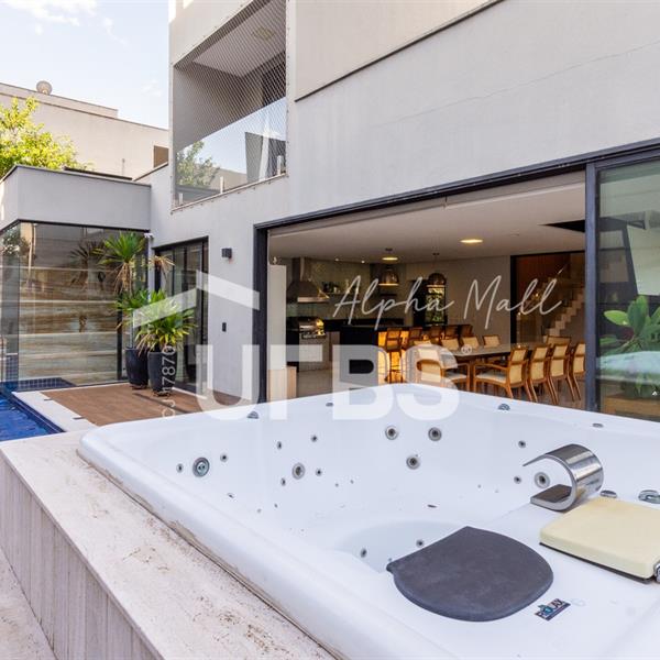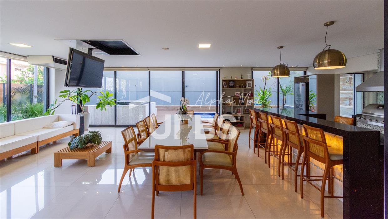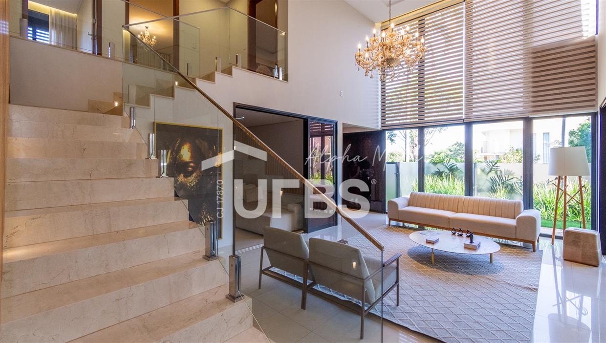 Sobrado de Esquina no Alphaville Araguaia – Sofisticação e Lazer Completo Descubra este belíssimo sobrado de esquina no Alphaville Araguaia, que une design moderno, conforto e lazer exclusivo em cada detalhe. São 543m² de terreno e 392m² de construção, projetados para oferecer praticidade e elegância em um dos condomínios mais desejados da região. No pavimento térreo, o living com pé-direito duplo impressiona pela amplitude e integração aos ambientes. A casa conta com 4 suítes e um escritório reversível para 5ª suíte, além de home cinema para momentos de entretenimento em família. A varanda gourmet climatizada, equipada com bancada em ilha e churrasqueira a carvão, é perfeita para receber amigos com conforto em qualquer estação. A cozinha completa, também com ilha central, alia sofisticação e funcionalidade. Na área externa, o lazer é um espetáculo à parte: piscina aquecida, spa para 8 pessoas, sauna molhada e muito espaço para relaxar e aproveitar ao máximo os dias de sol. O imóvel conta com usina fotovoltaica e poço artesiano. A garagem comporta até 4 veículos com total comodidade. Um imóvel que traduz qualidade de vida, exclusividade e requinte em cada detalhe.