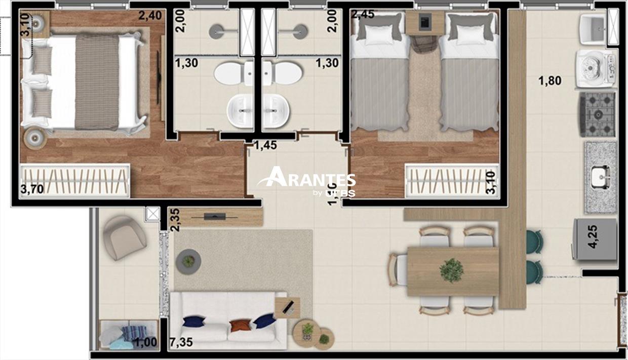 Seu Lar Completo: Apartamento com Suíte, Sacada e Toda Estrutura de Lazer Para Sua Família Viva com conforto neste apartamento de 55m², que oferece 2 quartos, sendo 1 suíte, todos com armários planejados, otimizando espaço no dia a dia e aproveitando a planta de forma inteligente. A sala ampla permite integração dos ambientes e a cozinha planejada conecta praticidade em um só lugar.O condomínio oferece uma estrutura completa de lazer e serviços: as piscinas adulto e infantil proporcionam diversão, o solarium oferece momentos de descanso ao sol, e o espaço fitness mantém sua rotina saudável sem sair de casa. Para crianças, há Play Kids, Movie Games e Oficina Criativa, estimulando criatividade e diversão. Serviços como Car Wash, Lava e Seca e Pet Care tornam o dia a dia ainda mais conveniente. Destaques do imóvel:• 2 quartos, sendo 1 suíte com armários planejados• Sala ampla integrada para convivência• Cozinha e banheiros com armários planejados• 1 vaga de garagem• 2 elevadores na torre• Portaria 24h garantindo segurança• Piscina adulto e infantil• Solarium e espaço fitness• Salão de festas e Play Kids• Movie Games e Oficina Criativa• Car Wash, Lava e Seca e Pet CareAgende sua visita e descubra o conforto e a praticidade de viver com lazer completo.