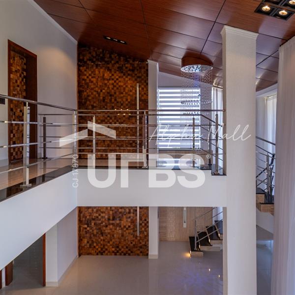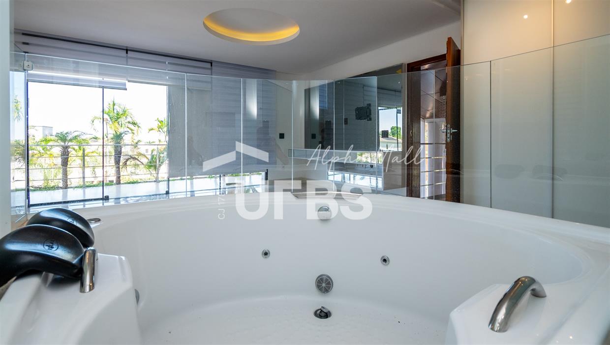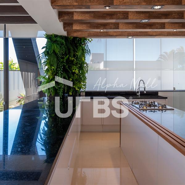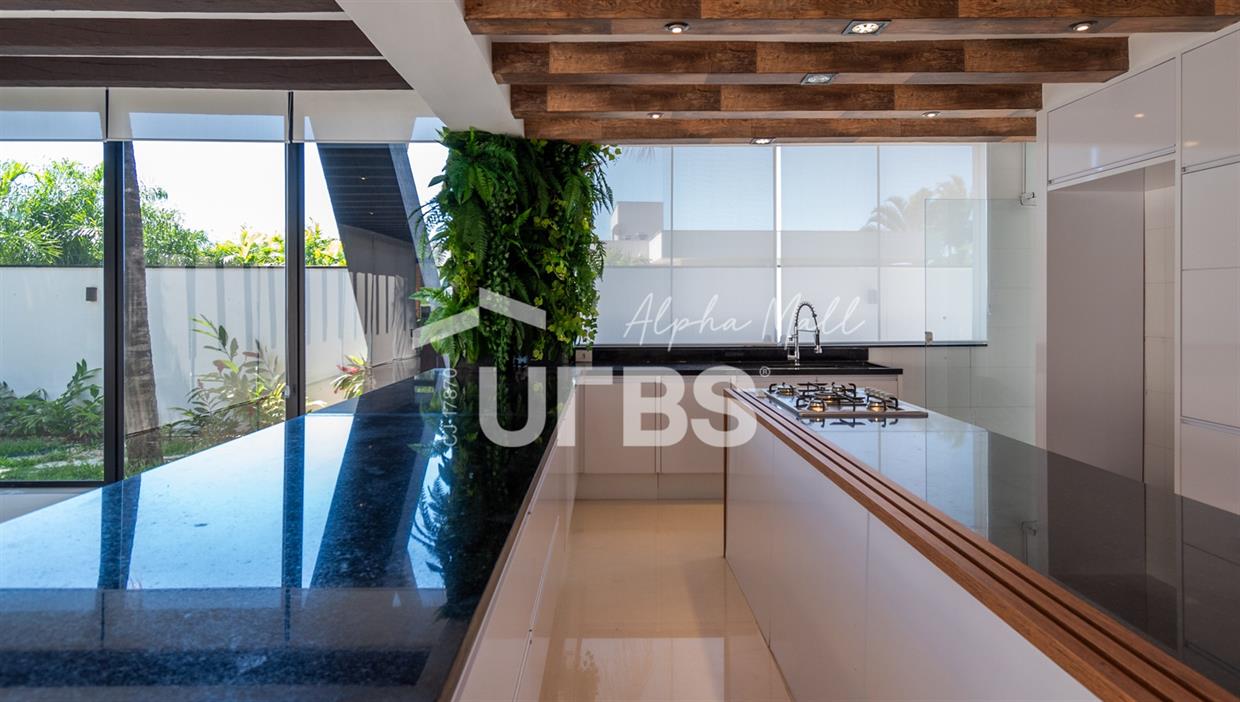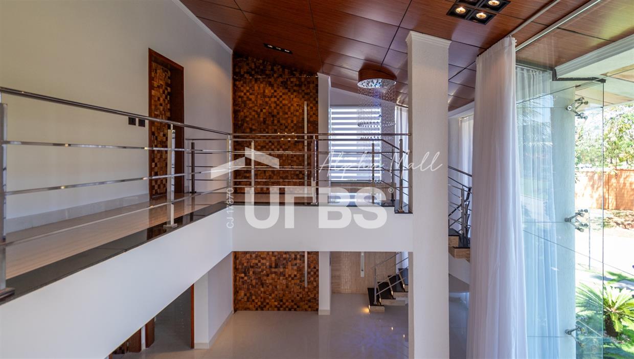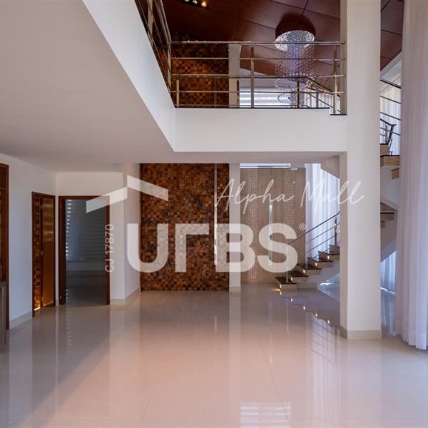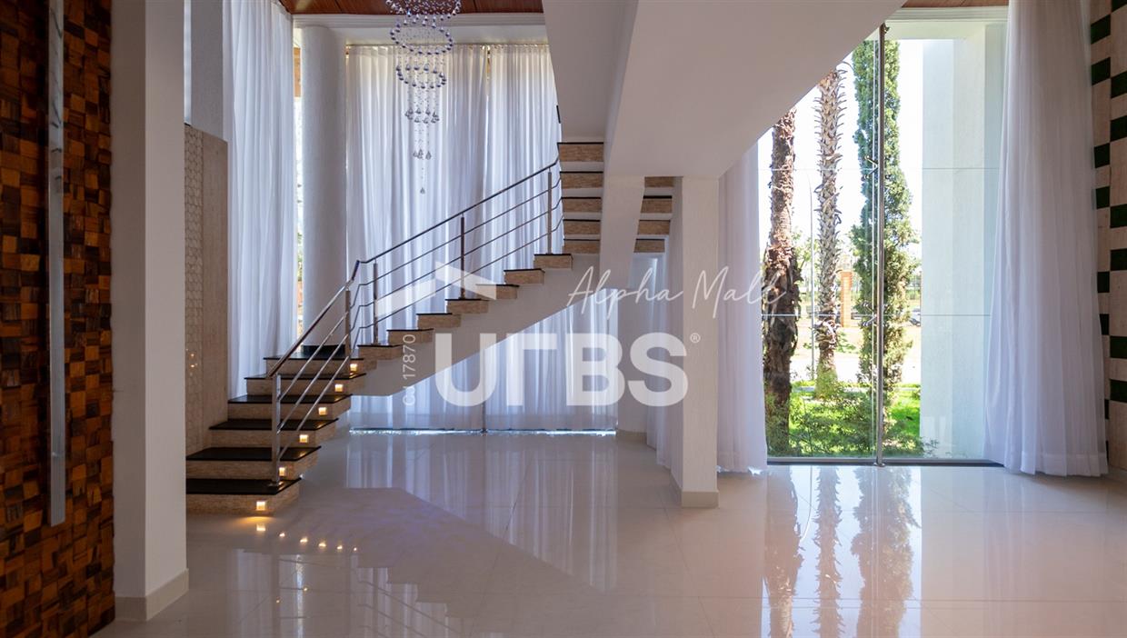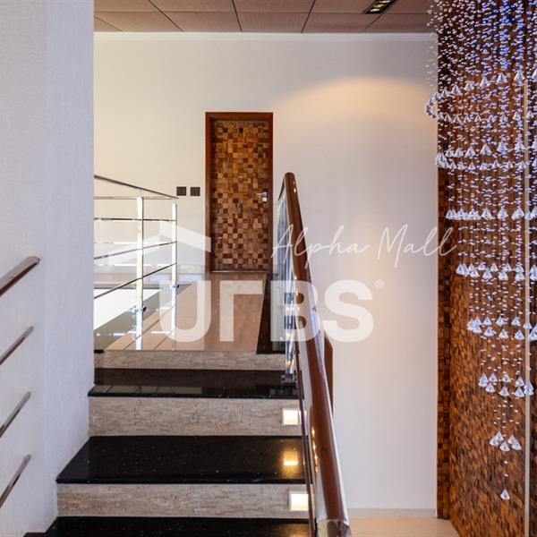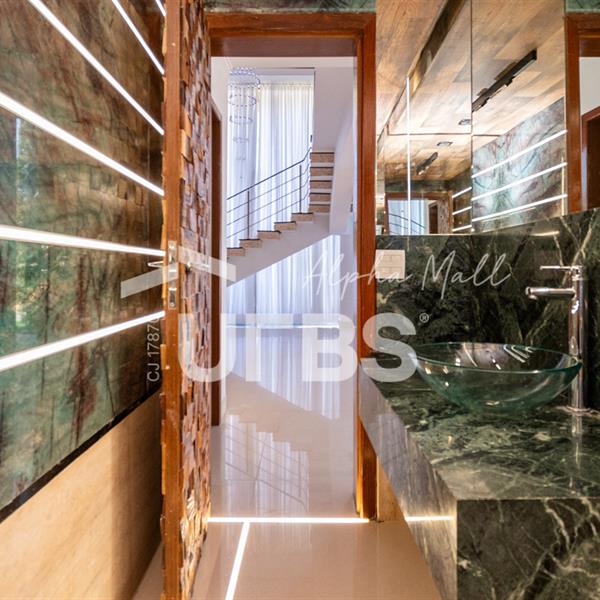 Sobrado mobiliado e decorado de alto padrão .5 suítes sendo 1 master com jacuzzi climatizadas .E 1 adaptada para cadeiranteTerreno com 700m2 .550m2 de área construída .porcos metros da portaria .Arquitetura feita pelo Pedro Ernesto .Área de lazer com piscina aquecida, sauna , cascata , churrasqueira a carvão .Garagem para 4 Carros .Dependência de empregada .Sobrado de esquina .Energia solar .Condomínio Alphaville Goiás , próximo ao shopping flamboyant .Área de lazer completa no condomínio .Projeto de iluminação