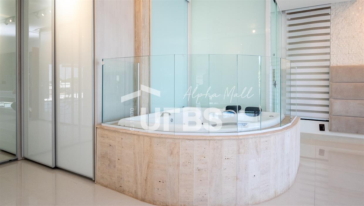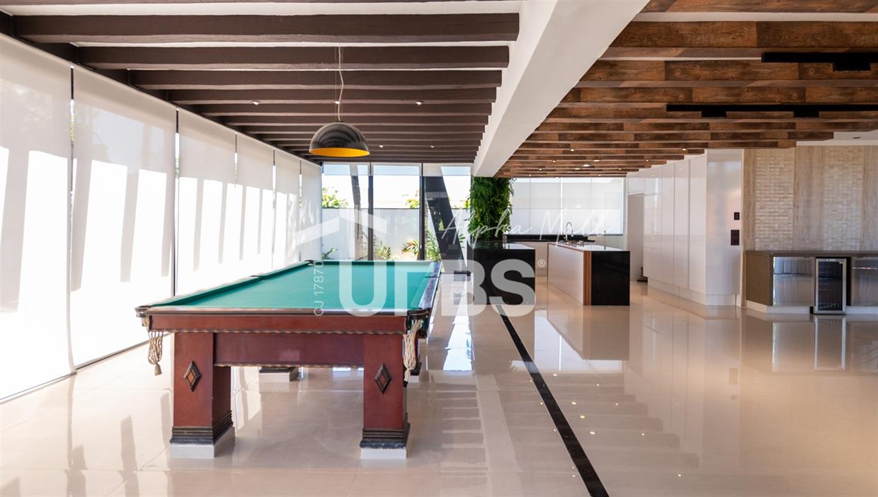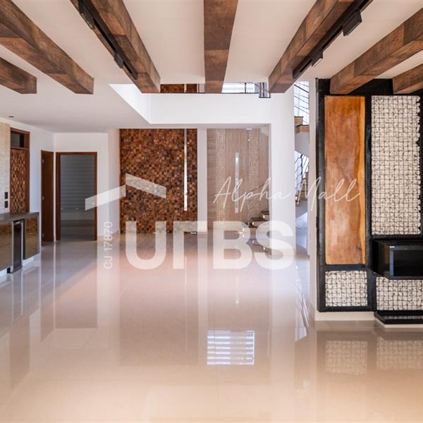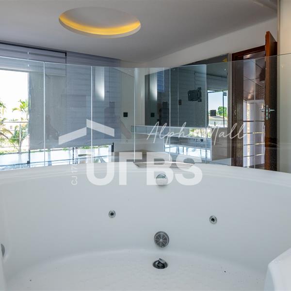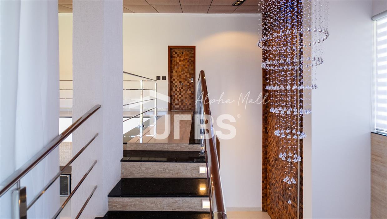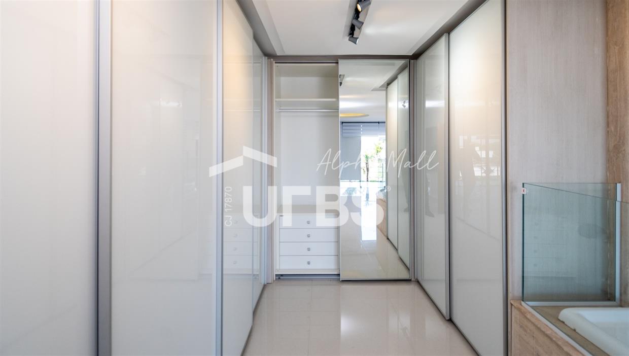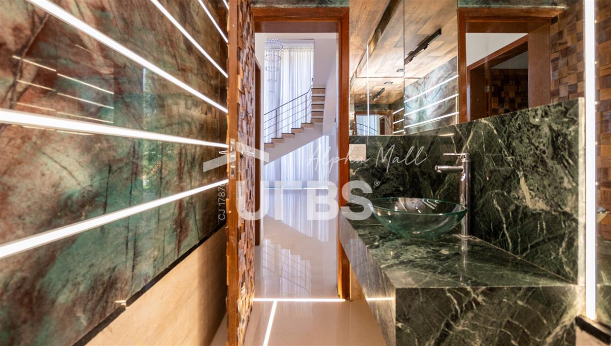 Sobrado mobiliado e decorado de alto padrão .5 suítes sendo 1 master com jacuzzi climatizadas .E 1 adaptada para cadeiranteTerreno com 700m2 .550m2 de área construída .porcos metros da portaria .Arquitetura feita pelo Pedro Ernesto .Área de lazer com piscina aquecida, sauna , cascata , churrasqueira a carvão .Garagem para 4 Carros .Dependência de empregada .Sobrado de esquina .Energia solar .Condomínio Alphaville Goiás , próximo ao shopping flamboyant .Área de lazer completa no condomínio .Projeto de iluminação