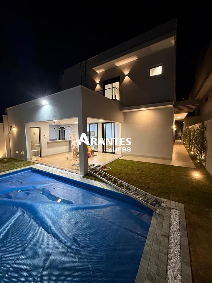 Conforto e Sofisticação Elevados no Condomínio Varanda SulEsta casa de dois pavimentos foi cuidadosamente projetada para unir conforto, elegância e funcionalidade. No pavimento térreo, o destaque fica por conta da área social, que integra sala de estar espaçosa e cozinha com bancada americana. A área gourmet, equipada com bancada e churrasqueira, conecta-se à piscina aquecida com hidro e iluminação, criando um ambiente de lazer e convivência ideal para confraternizações. O espaço ainda conta com ducha, banheiro externo e corredor lateral independente para visitantes. Há também um quarto versátil, que pode ser usado como escritório ou dormitório térreo. No pavimento superior, a suíte master impressiona pelo amplo closet e pela sacada privativa, criando um refúgio de descanso e privacidade. Os demais quartos oferecem conforto, com nichos para roupeiro. Todos os ambientes foram planejados para receber ar-condicionado e contam com pontos estratégicos de iluminação natural. A garagem comporta até seis carros, sendo três cobertos e três externos, proporcionando espaço de sobra.Destaques do imóvel• Piscina aquecida com hidro, iluminação e revestimento cerâmico• Área gourmet completa com bancada e churrasqueira• Sala ampla com integração à cozinha americana• Área de serviço com depósito e corredor lateral independente• Quarto térreo podendo ser reversível para escritório• Suíte máster com closet amplo e sacada privativa• Suíte adicional com nicho para guarda-roupas• Garagem para até 6 carros, sendo 3 cobertos• Aquecimento solar, irrigação automática e preparação para ar-condicionadoLazer e segurança do condomínio:• Piscina e dois espaços gourmet independentes• Duas quadras de tênis e duas quadras de peteca• Quadra poliesportiva, sauna e sala de massagem• Academia equipada, playground e brinquedoteca• Sala de TV, praças, jardins e lagos• Sistema de segurança moderno e monitorado 24hAgende sua visita e descubra o conforto, lazer no Varanda Sul.