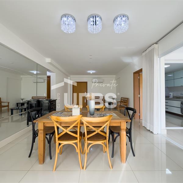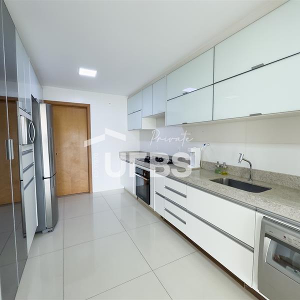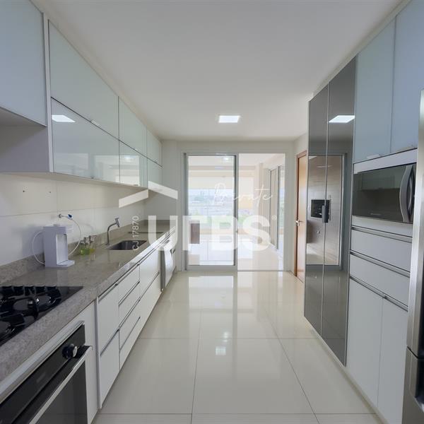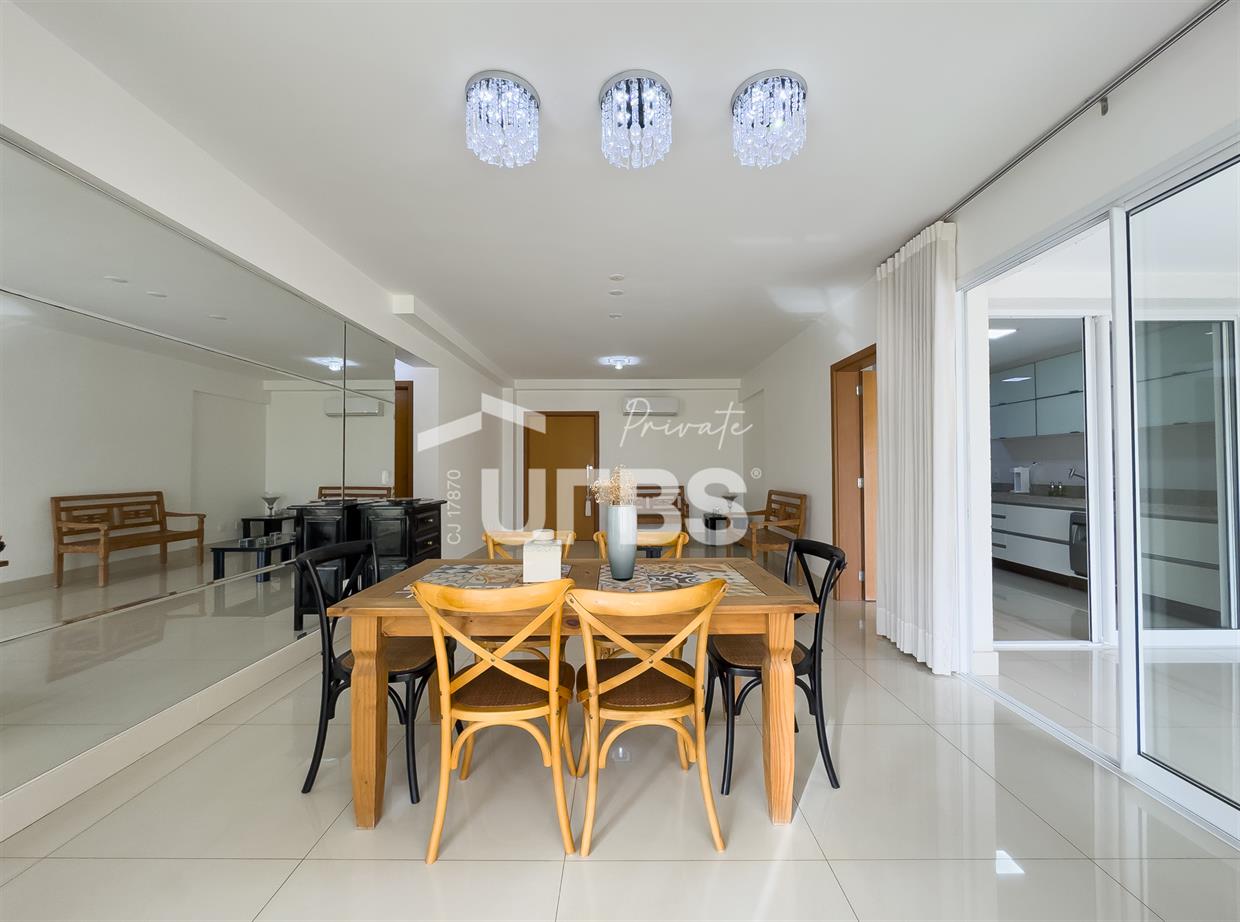 Residencial Splendore Avenida T 3, 1521, Setor Bueno, Goiânia Apartamento com 180 m² de área privativa, está situado no 6 andar, voltado para o poente passante, garantindo excelente iluminação natural. O imóvel conta com quatro quartos, sendo três suítes. Possui sala de estar integrada à sala de jantar, sala de TV que pode ser utilizada como escritório, varanda gourmet com churrasqueira a carvão, lavabo, cozinha, área de serviço e banheiro de serviço. Dispõe ainda de elevador privativo, escaninho e três vagas de garagem individuais. O apartamento esta pronto para morar com conforto, sofisticação e funcionalidade. Obs. Os móveis da foto não ficarão no apto. Somente fixos e ar condicionados!