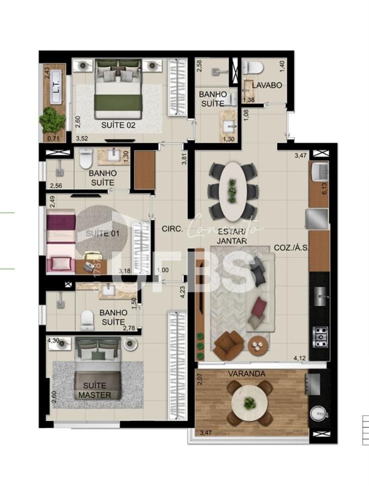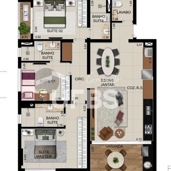 APTO 3 SUÍTES - OPUS GYRO O2 Área: 99,46m² Posição: ACIMA DO 25º andar Sala 2 ambientes 3 suítes, sendo 1 master Cozinha integrada Área de serviço Vaga de garagem Lazer completo e sofisticado, com foco em bem-estar e contato com a natureza, incluindo piscinas adulto e infantil, academia equipada, espaço gourmet com churrasqueira, salão de festas, área de jogos, spa e playground. A área de lazer possui 1.800 m² e a piscina adulto climatizada tem raia de 25m e vista para a Reserva Ybiti. Ágio: R$ 367.917,00 Saldo Devedor: R$ 622.082,00 + cessão de direitos Valor total: R$ 990.000,00