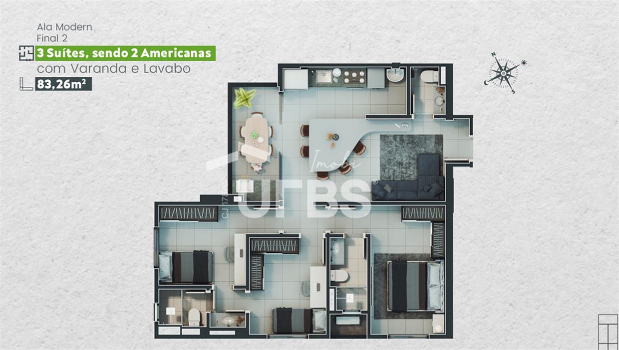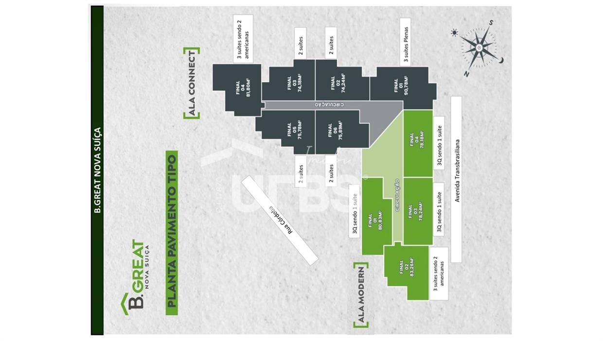 B Great - Nova Suíça Apartamento com 83,26 m² e 3 suítes, sendo 2 americanas, disponível para venda no B Great Nova Suíça. Localizado na Torre Modern, o imóvel oferece uma sala para 2 ambientes; varanda isolada, com ambiente de estar; cozinha integrada; lavabo; e área de serviço. São 3 suítes, sendo 1 suíte plena e 2 americanas. O edifício está em fase final de entrega, com previsão de finalização para Janeiro de 2026, e contará com lazer completíssimo, além de uma localização extremamente privilegiada, ao lado da Avenida Transbrasiliana, cercada de diversos serviços, facilidades e comodidades para o dia a dia. Escaninho (13 - Subsolo) Vagas de garagem (53/53A - Subsolo) Valor Total: R$ 780.000,00