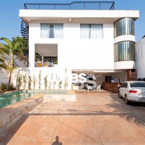 Sobrado tríplex, com elevador, no Condomínio do Lago, com fundo para a mata, oferecendo luxo, conforto e integração com a natureza. Em um lote de 560 m² e 490 m² de construção, conta com 5 suítes plenas, uma delas com closet e hidromassagem, além de elevador panorâmico que atende os três andares. Possui amplas salas de estar, TV, jantar e escritório, dois lavabos, duas cozinhas e varanda. A área de lazer é um destaque à parte, com espaço gourmet, piscina com borda infinita, hidromassagem, praia, deck em madeira ipê e churrasqueira. Garagem para 5 carros, sendo 2 cobertas, irrigação automatizada, iluminação em LED, água quente em toda a casa e acabamentos em quartzo Montblanc.