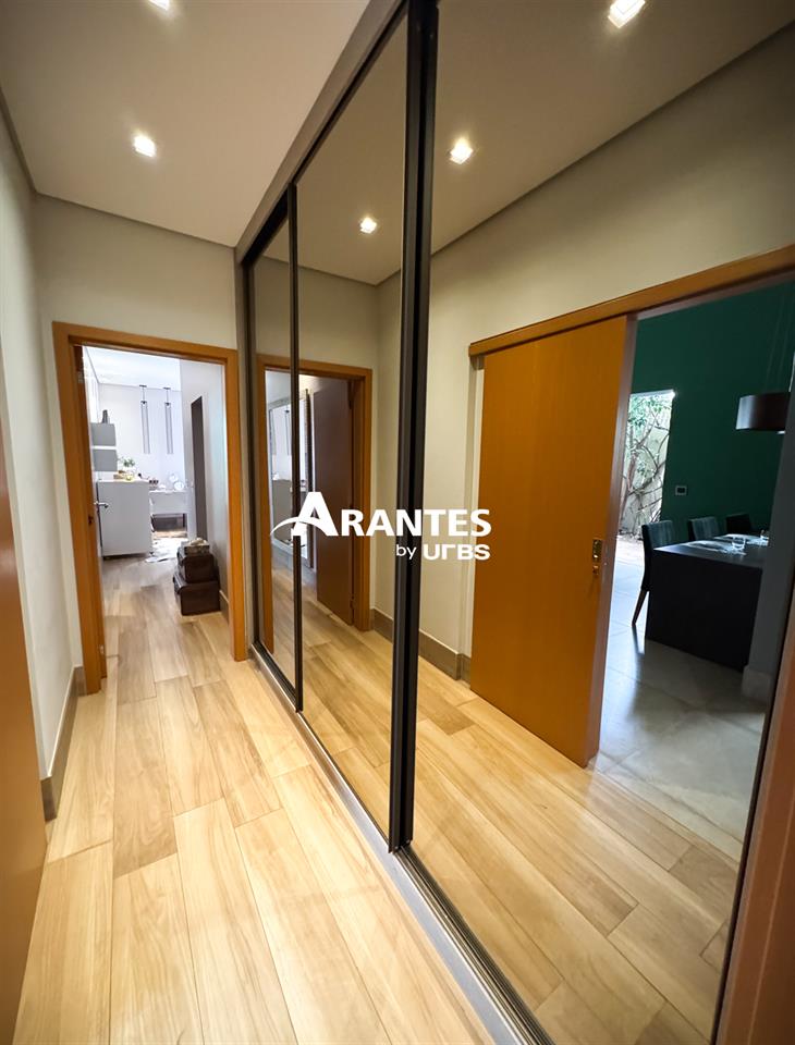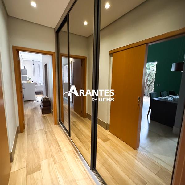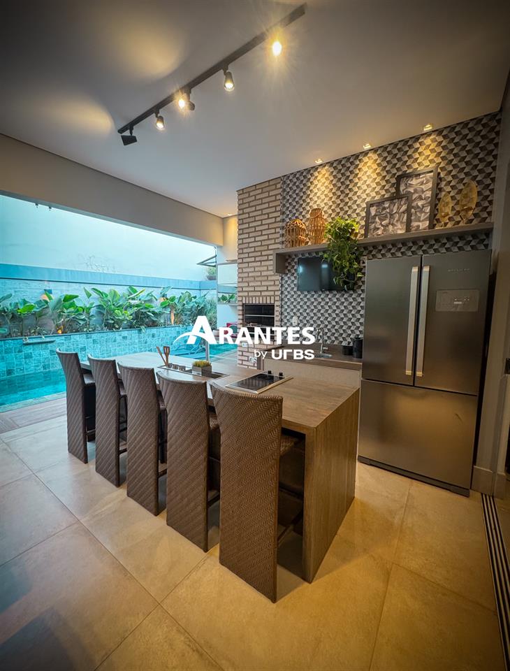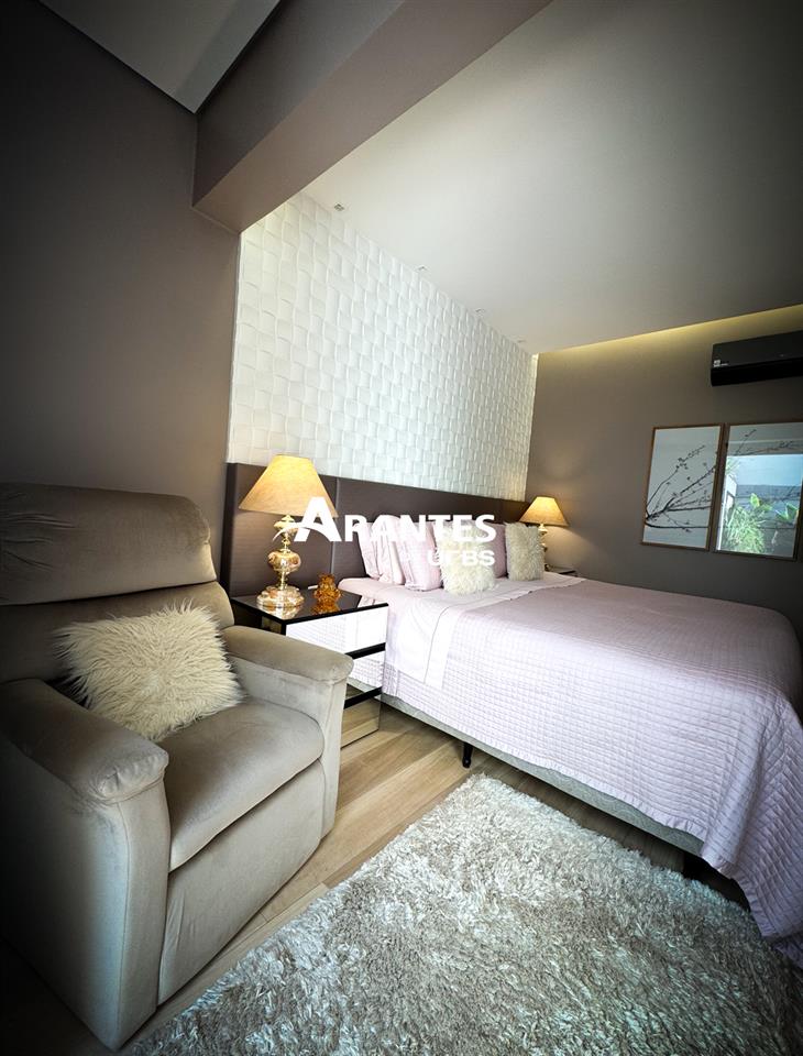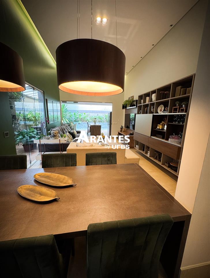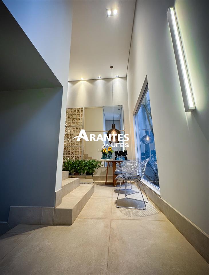 Arquitetura Moderna e Espaços Planejados Para o Seu Bem-Estar Com 330m² de área construída em um terreno de 372m², localizada em condomínio, na região na região sul da cidade, esta casa une arquitetura moderna com o máximo de conforto e sofisticação. Logo na entrada, o hall com pé-direito de 5 metros revela a imponência e o cuidado do projeto com estética e amplitude. O corpo da casa, com pé-direito de 4 metros, mantém o mesmo padrão de integração entre os ambientes, proporcionando fluidez entre sala e área gourmet. A área externa é um dos grandes destaques, com piscina aquecida, lavabo e paisagismo formado, além de um projeto em LED que valoriza a arquitetura e traz aconchego à noite. A cozinha moderna possui ilha central, armários planejados, enquanto a lavanderia, com armários e banheiro de apoio, facilita o dia a dia. A área íntima é composta por 3 suítes, sendo 2 suítes master com closet — uma com acesso direto à piscina e outra com jardim de inverno no térreo. Um escritório reversível pode ser transformado facilmente em uma quarta suíte, adaptando-se às necessidades da família. Destaques do imóvel: • 3 suítes climatizadas, sendo 2 master com closet e escritório reversível para 4ª suíte • Ambientes amplos, integrados e com pé-direito alto • Sala de estar e área gourmet conectadas • Cozinha com ilha e armários planejados • Lavanderia equipada com armários e banheiro • Roupeiro no corredor, que amplia as opções de organização • Duas suítes térreas: uma com acesso à piscina e outra com jardim de inverno • Piscina aquecida, lavabo externo e paisagismo formado • Acabamentos Portobello e iluminação em LED, reforçam o alto padrão da construção • Sistema de aquecimento solar e móveis de primeira linha Agende sua visita e conheça todos os detalhes.