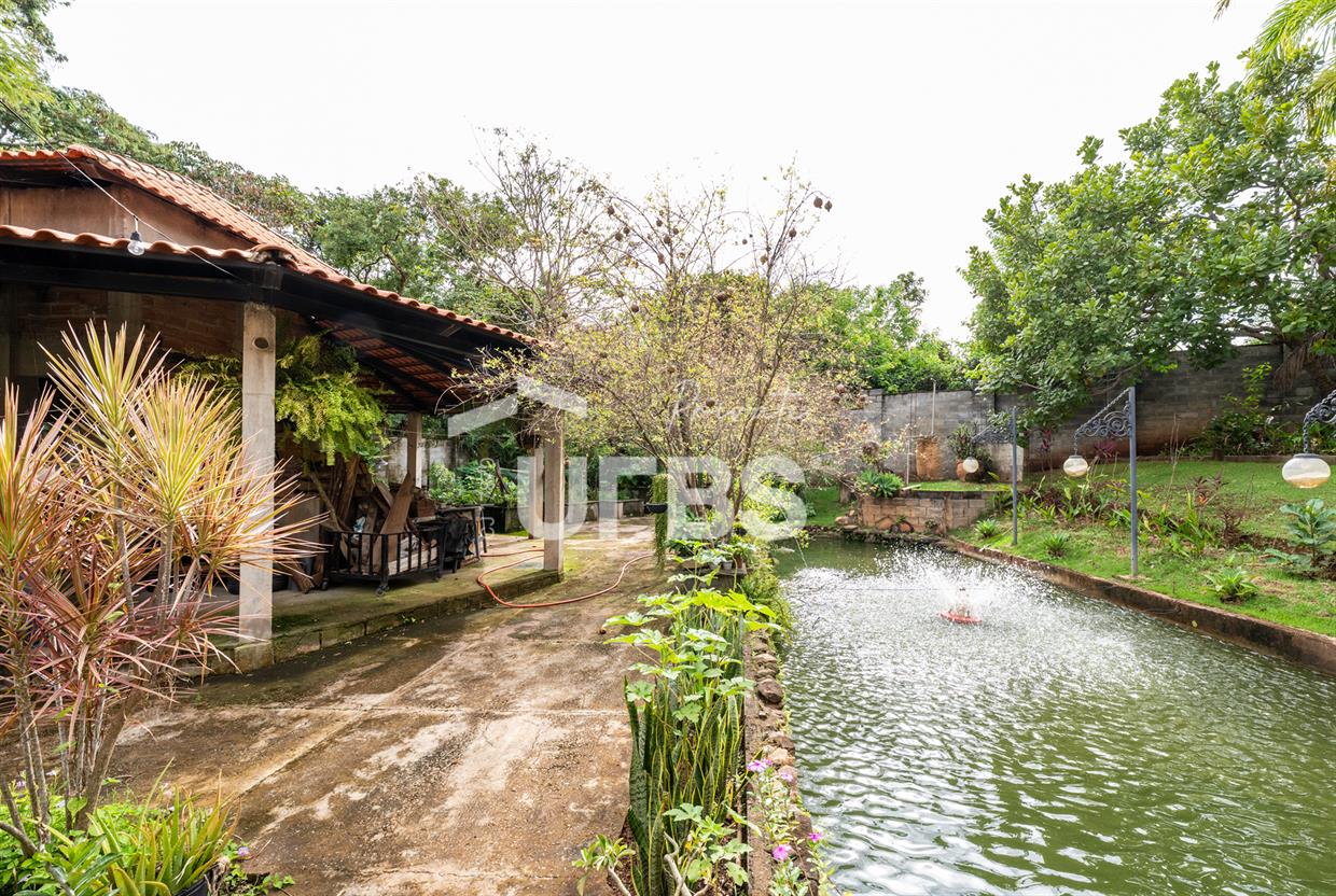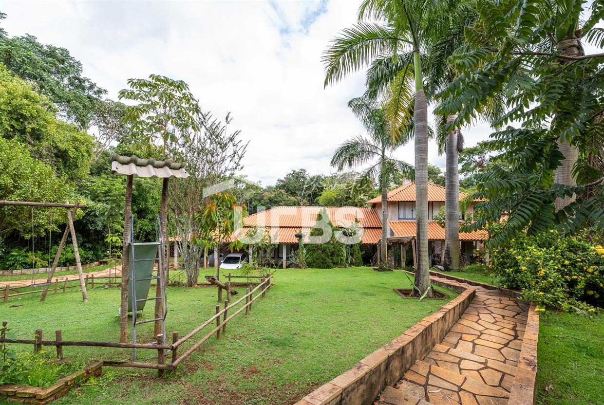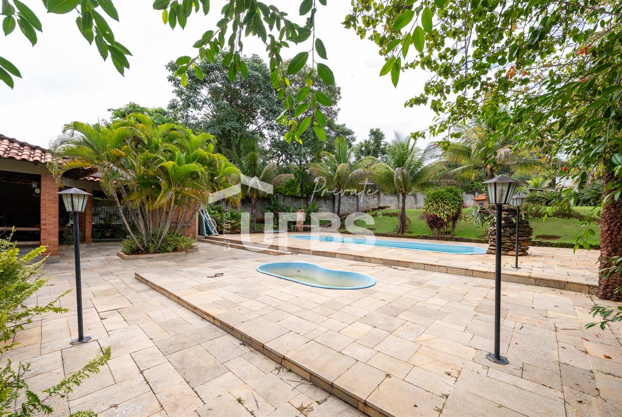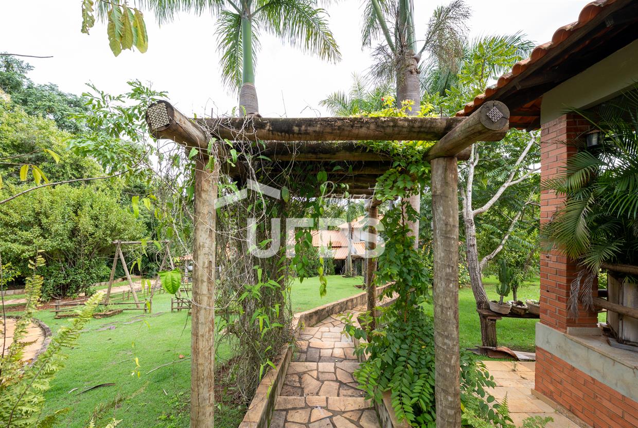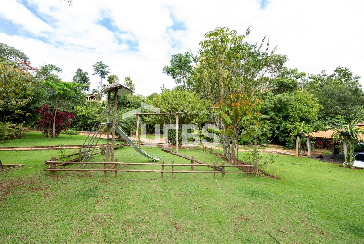 - 460m2 - 5 suites ( 2 sem armario, 2 com armario embutido 1 sem armario ) - Cozinha completa com armario - Cozinha externa gourmet com fogão caipira - Sala de visita - Banheiro externo - Quiosque com churrasqueira ao lado da casa - Tanque de peixe 15x8 - Piscina infantil e adulta - Quiosque de churrasqueira na piscina com banheiro e despensa - Campo de grama - Garagem coberta para 4 carros - Garagem descoberta para 10 carros - Poço semi artesiano - 2 bombas no córrego para irrigação Casa de caseiro - 2 quartos - Sala - Banheiro - Cozinha - Galinheiro - Canil OBS: Aceita permuta em casa de condominio fechado, mais proximo de Goiânia