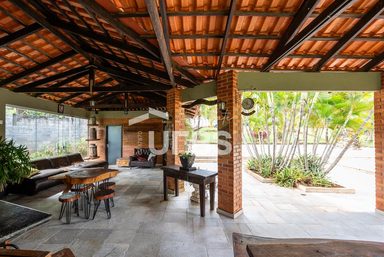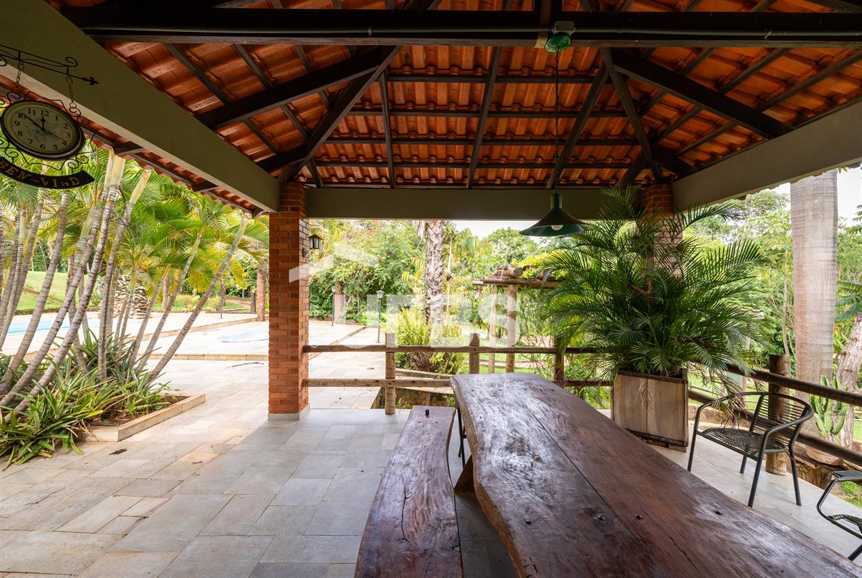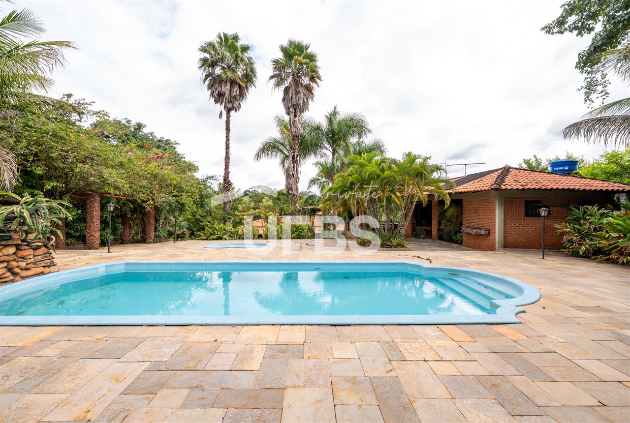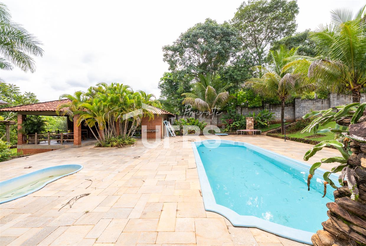 - 460m2 - 5 suites ( 2 sem armario, 2 com armario embutido 1 sem armario ) - Cozinha completa com armario - Cozinha externa gourmet com fogão caipira - Sala de visita - Banheiro externo - Quiosque com churrasqueira ao lado da casa - Tanque de peixe 15x8 - Piscina infantil e adulta - Quiosque de churrasqueira na piscina com banheiro e despensa - Campo de grama - Garagem coberta para 4 carros - Garagem descoberta para 10 carros - Poço semi artesiano - 2 bombas no córrego para irrigação Casa de caseiro - 2 quartos - Sala - Banheiro - Cozinha - Galinheiro - Canil OBS: Aceita permuta em casa de condominio fechado, mais proximo de Goiânia