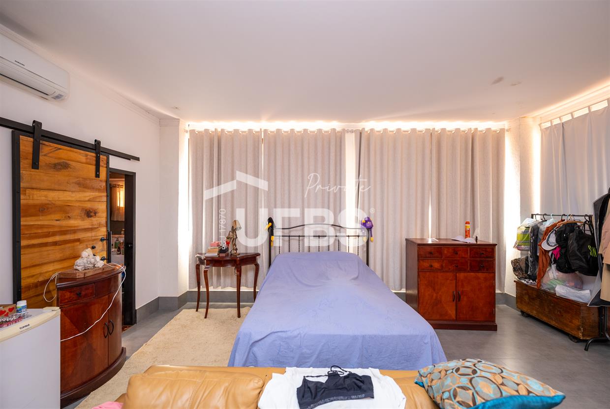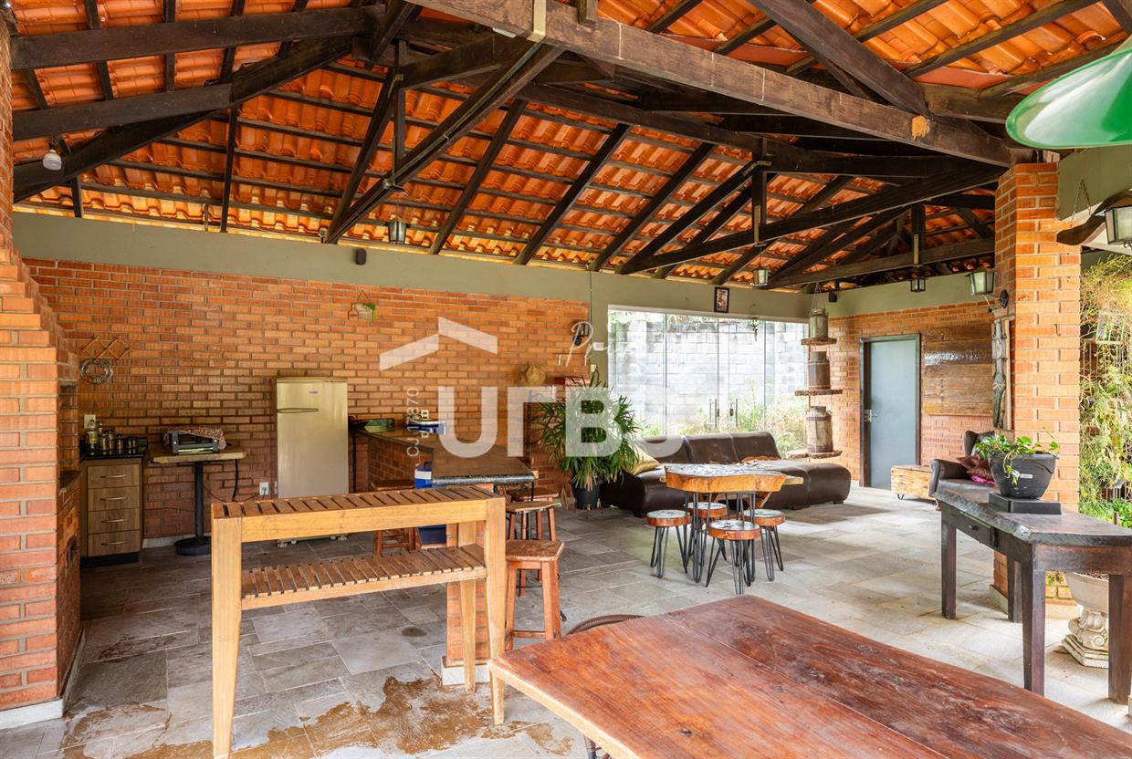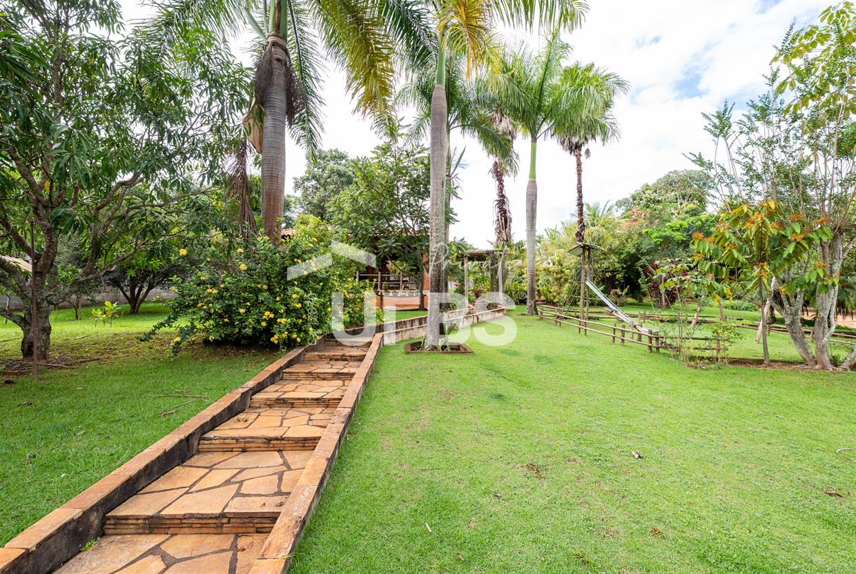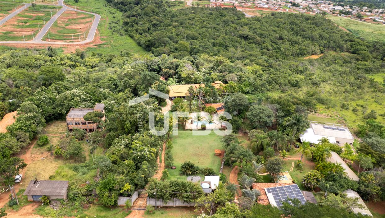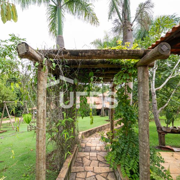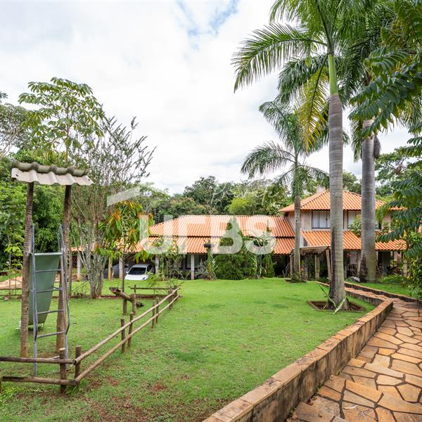 - 460m2 - 5 suites ( 2 sem armario, 2 com armario embutido 1 sem armario ) - Cozinha completa com armario - Cozinha externa gourmet com fogão caipira - Sala de visita - Banheiro externo - Quiosque com churrasqueira ao lado da casa - Tanque de peixe 15x8 - Piscina infantil e adulta - Quiosque de churrasqueira na piscina com banheiro e despensa - Campo de grama - Garagem coberta para 4 carros - Garagem descoberta para 10 carros - Poço semi artesiano - 2 bombas no córrego para irrigação Casa de caseiro - 2 quartos - Sala - Banheiro - Cozinha - Galinheiro - Canil OBS: Aceita permuta em casa de condominio fechado, mais proximo de Goiânia