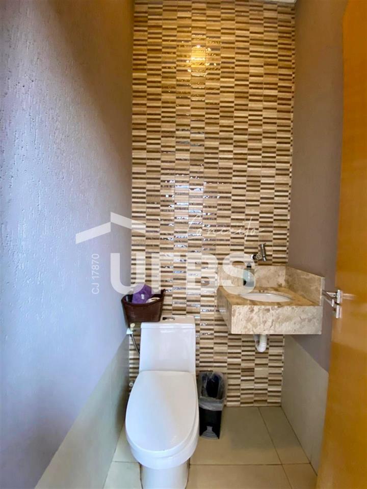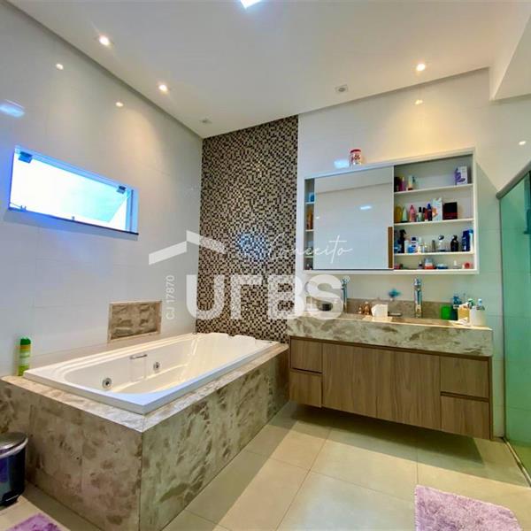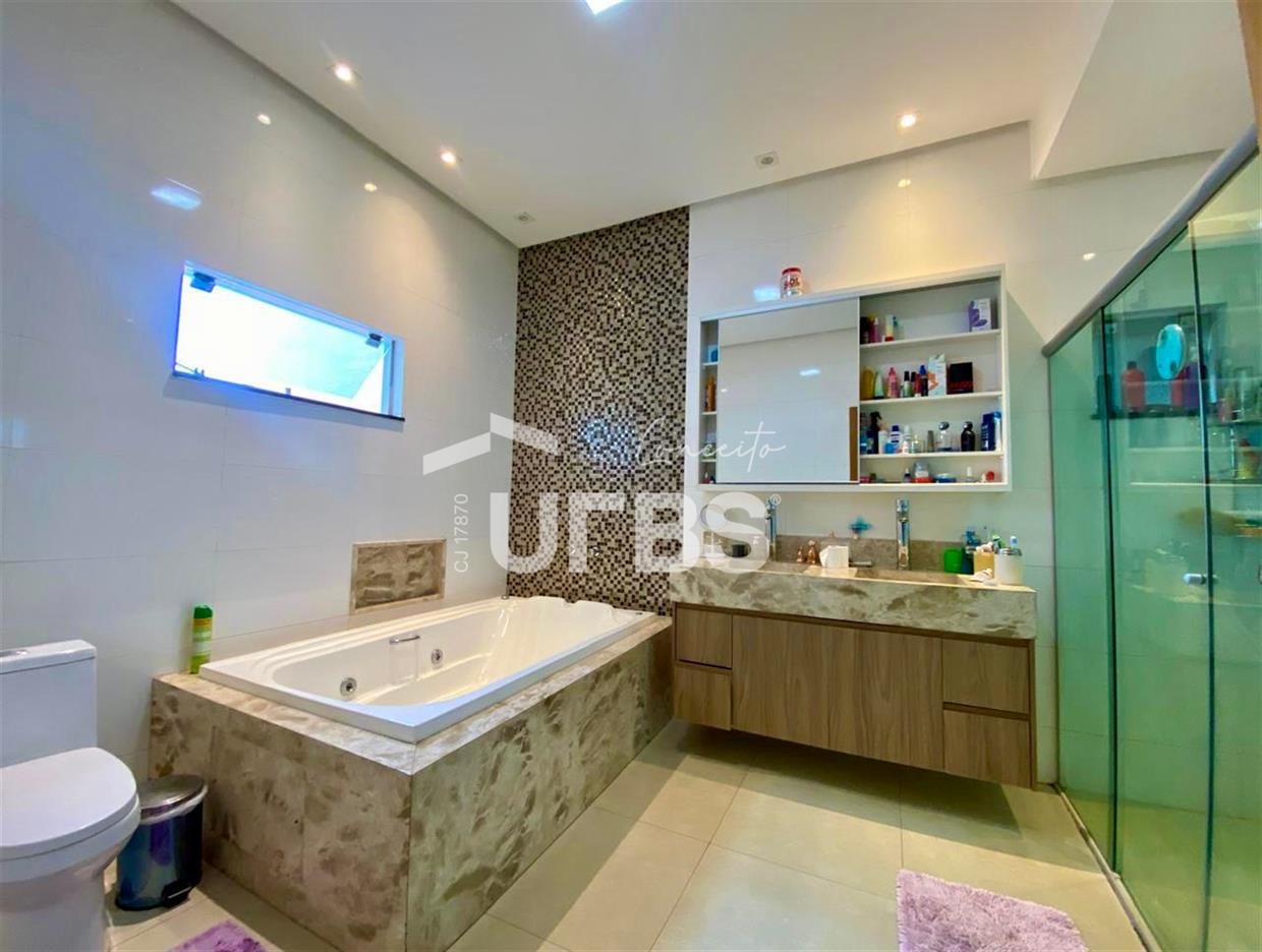 Casa Sobrado. Área total 210,00 m². Área privativa 215,40 m². São 4 quartos sendo 4 suítes, 2 americanas e 2 plenas. Suíte principal com closet e banheira. 4 banheiros todos com box em blindex. São 2 salas de estar e 1 sala de jantar. Escritório. Cozinha ampla com varanda gourmet, forno, coifa e fogão cooktop. Área de serviço. Churrasqueira a carvão. Piscina aquecida com cascata, hidromassagem e iluminação por controle remoto. Energia solar. Garagem para 3 carros. Casa toda no porcelanato. Portão eletrônico. Sistema elétrico e de tubulação para boiler. Pontos para instalação de ar condicionado. Cerca elétrica e Concertina. Câmera de Segurança.