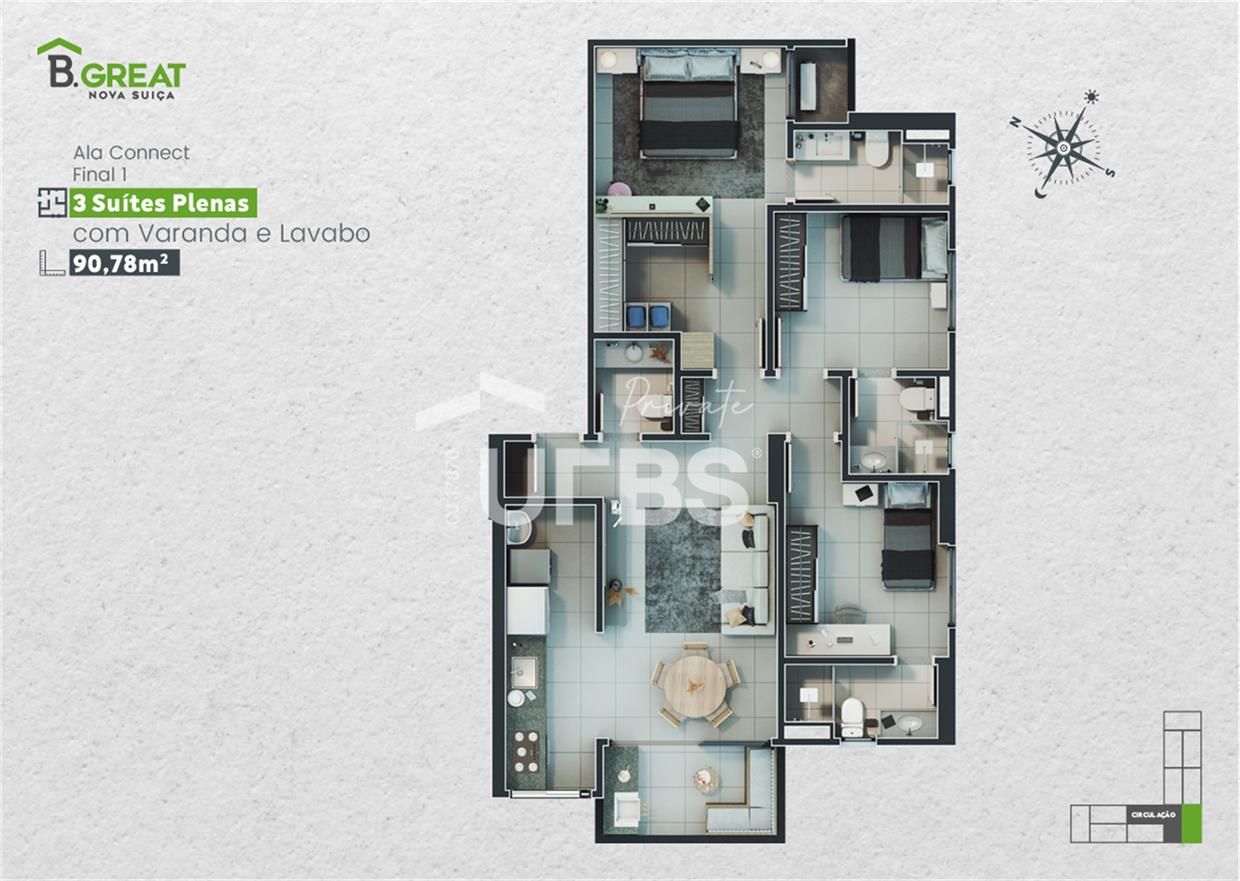 O B.Great Nova Suíça é um empreendimento residencial situado entre o Setor Nova Suíça e o parque Amazônia em Goiânia. Apartamento novíssimo lacrado pela construtora nos ajustes finais a com 90 m² bem distribuídos com 3 suítes plenas, a unidade tem 2 vagas de garagem e escaninho esse empreendimento foi pensado para oferecer praticidade uma rotina otimizada para os moradores, com serviços de alto padrão no dia a dia. Será entregue em janeiro de 2026. Para quem busca morar com mais liberdade, espaço externo e o conforto de um projeto contemporâneo, esta unidade oferece um jeito exclusivo de viver no coração da Nova Suíça. A planta foi pensada para favorecer circulação, bem-estar e o dia a dia com mais fluidez. Mais de 2.000 m² de lazer equipado e decorado Piscina com borda infinita, aquecida e raia de 25m Sauna, lounge e área para relaxamento Academia completa indoor e outdoor Espaços infantis: brinquedoteca e playground Pet place planejado Salão de festas com varandas e apoio gourmet B. Market 24h, lavanderia OMO, coworking, DIY e B. Wash Sistema de segurança moderno com acessos controlados Essa é a sua oportunidade de morar ou investir no empreendimento mais novo da cidade!