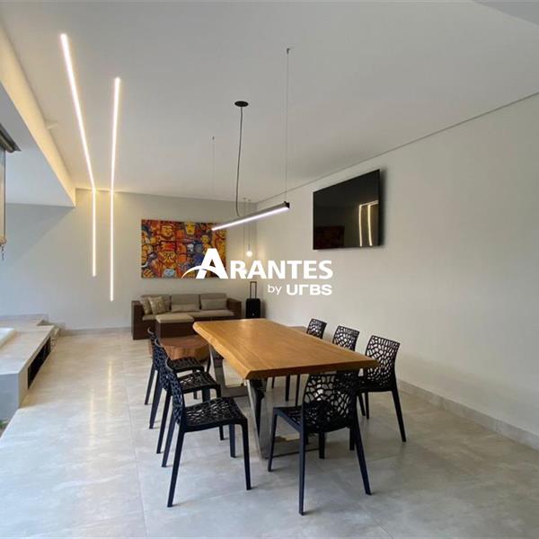 Um Sobrado que Transforma Rotina em Qualidade de Vida: 3 Suítes, Banheira, Gourmet e Spa Com 237m² de área privativa inteligentemente distribuídos em um terreno de 360m², este sobrado no Condomínio Paradiso Ecológico envolve logo na chegada pela sensação de espaço, conforto e sofisticação. No piso inferior, a sala ampla em três ambientes cria cenários para receber, conviver e relaxar e está adornada com um lavabo. A cozinha está totalmente equipada com armários e além disso, possui um escritório privativo para o trabalho remoto ou estudos. A área de lazer conta com churrasqueira para momentos de confraternização, ducha e um relaxante spa. No pavimento superior, são 3 suítes, sendo uma master com closet e banheira para momentos de relaxamento incomparáveis. Todas as suítes são equipadas com armários planejados e ar condicionado, garantindo o seu conforto em todas as estações. Uma sala de TV no piso superior complementa o espaço íntimo da famíliar. Destaques do imóvel: • Escritório reservado para home office • Cozinha com armários planejados • Área de lazer com churrasqueira, ducha e spa • Área de serviço independente • Garagem ampla, com depósito • 3 suítes com armários e ar-condicionado • Suíte master com closet e banheira, pensada para momentos de descanso • Sala de TV no piso superior para momentos mais reservados • Sistema de aquecimento solar • Acabamento 100% em porcelanato 1,25 x 1,25 retificado • Condomínio Paradiso Ecológico com lazer completo: piscinas, campo de futebol, lago, playground, • Quadras esportivas, fazendinha, cinema, salão de festas, sala de jogos, academia, pilates, sauna e portaria 24 horas Agende sua visita e conheça este imóvel.