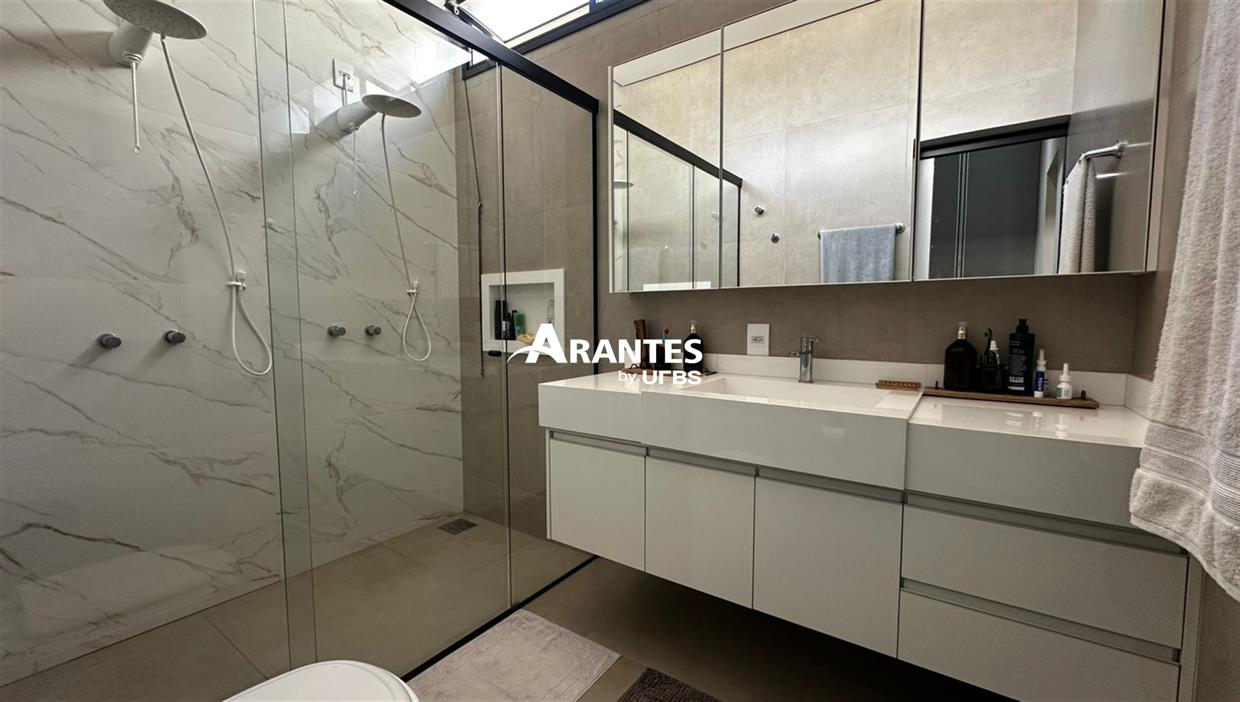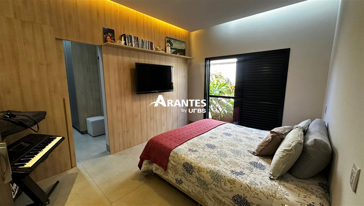 Elegância, Espaço e Lazer em Casa com Piscina Aquecida Esta casa está localizada no condomínio Park Sul e conta com 182m² de construção, em um terreno de 360m². A sala com pé-direito de 5 metros cria um ambiente imponente, bem iluminado e convidativo, enquanto a cozinha com bancada em ilha, se conecta à área gourmet, formando um espaço funcional, pensado para quem aprecia receber bem. A churrasqueira, os armários planejados e o cooktop já instalados tornam o ambiente prático, organizado e pronto para uso. A área externa é um convite ao lazer. A piscina aquecida com prainha, pontos de hidromassagem e iluminação em LED transforma o espaço em um ambiente acolhedor tanto para os dias ensolarados quanto para as noites mais tranquilas, cercada por paisagismo completo com iluminação decorativa e sistema de irrigação automatizado. Na área íntima, são três suítes, com destaque para a master com closet, chuveiro duplo e pela porta com acesso direto ao jardim, criando uma conexão agradável com a área externa. Destaques do imóvel: • Sala com climatizada e pé-direito duplo • Cozinha com ilha integrada à área gourmet e churrasqueira • 3 suítes climatizadas, sendo a master com closet e acesso ao jardim • Piscina aquecida com prainha, hidromassagem e LED • Planejados completos em toda a casa • Ar-condicionado instalado na sala e suítes • Paisagismo iluminado com irrigação automatizada • Sistema de segurança com câmeras e alarmes • Garagem para 4 carros Agende sua visita e conheça a experiência de morar no Park Sul.
