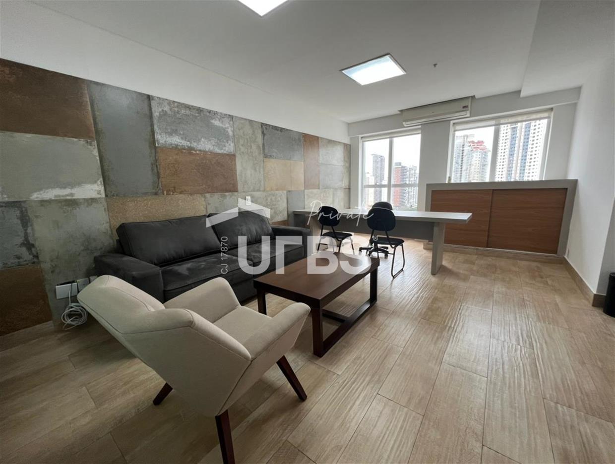 Sala comercial de 39 m2 à venda no Ed. New Times Square, Setor Bueno. Com localização privilegiada, próxima do Parque Vaca Brava e do Goiânia Shopping, o imóvel está mobiliado e conta com uma vaga de garagem rotativa.