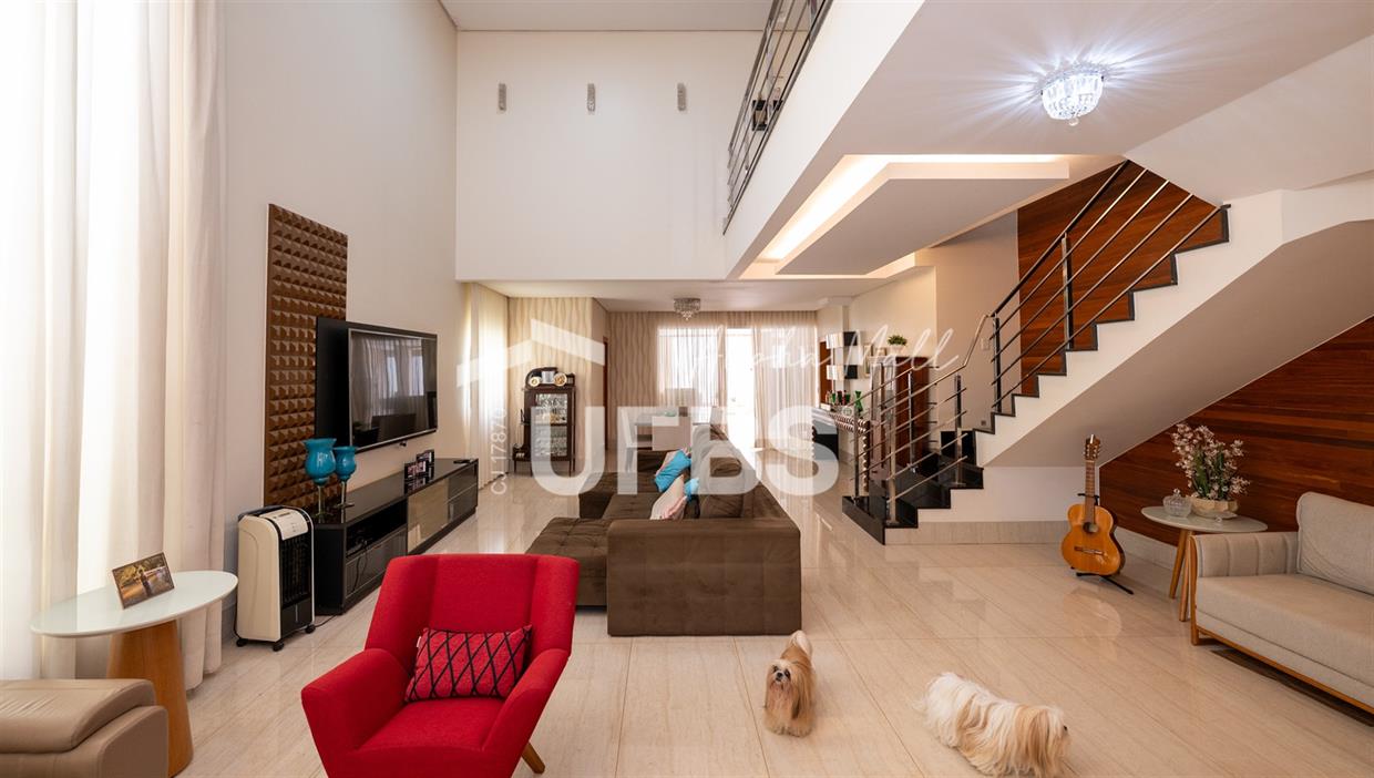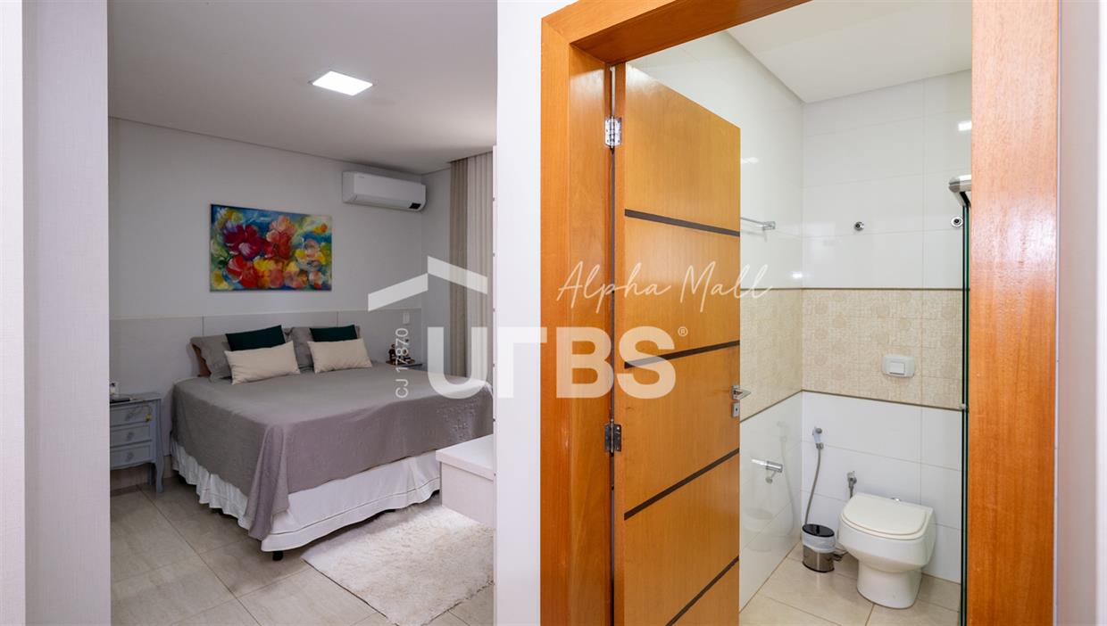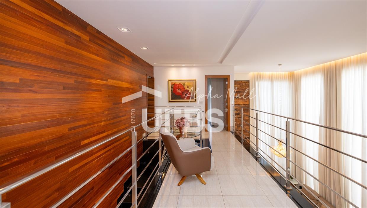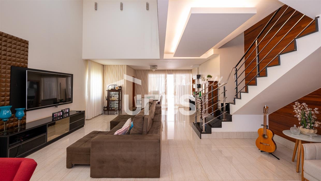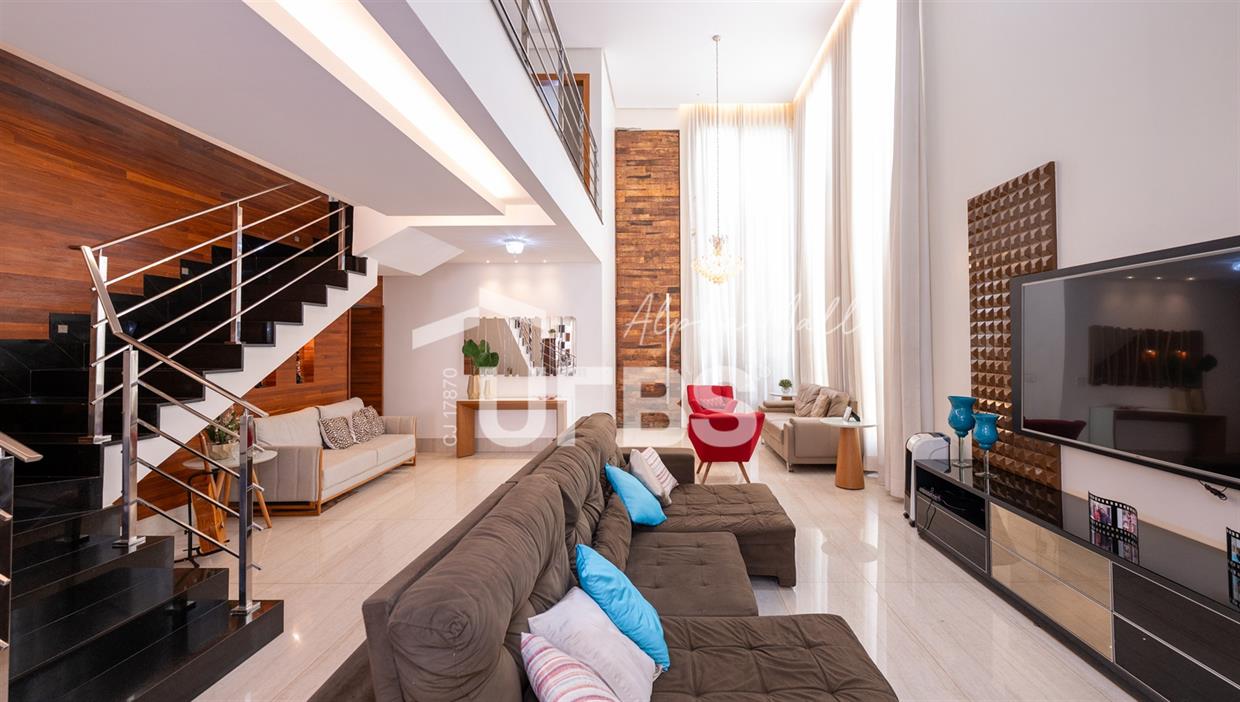 Sobrado de Esquina no Alphaville Araguaia – Sofisticação e Lazer Completo Descubra este belíssimo sobrado de esquina no Alphaville Araguaia, que une design moderno, conforto e lazer exclusivo em cada detalhe. São 550m² de terreno e 450m² de construção, projetados para oferecer praticidade e elegância em um dos condomínios mais desejados da região. No pavimento térreo, o living com pé-direito duplo impressiona pela amplitude e integração aos ambientes. A casa conta com 5 suítes, sendo 1 no térreo e 4 no andar superior. A varanda gourmet, equipada com churrasqueira a carvão, é perfeita para receber amigos com conforto em qualquer estação. A cozinha completa ao lado da varanda gourmet alia sofisticação e funcionalidade. Na área externa, o lazer é um espetáculo à parte: piscina aquecida, sauna molhada e muito espaço para relaxar e aproveitar ao máximo os dias de sol. O imóvel conta com usina fotovoltaica e poço artesiano. A garagem comporta até 4 veículos com total comodidade. Um imóvel que traduz qualidade de vida, exclusividade e requinte em cada detalhe.