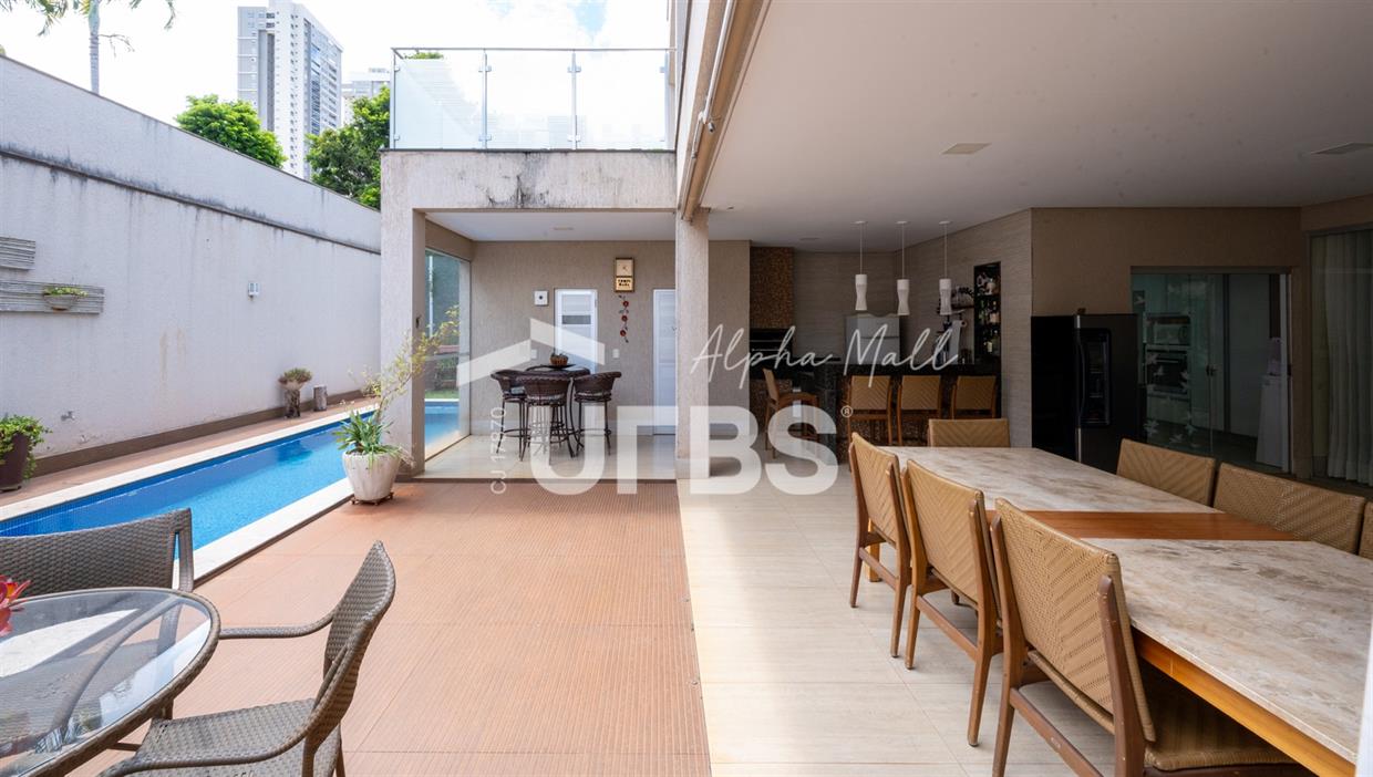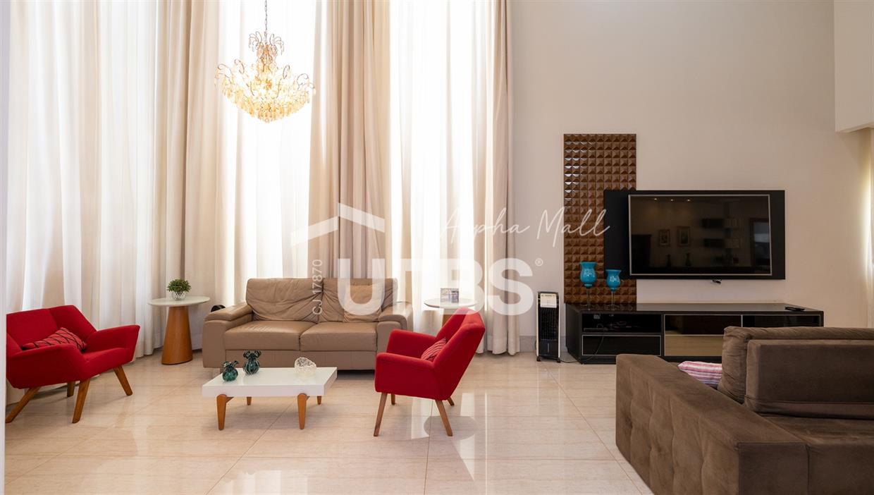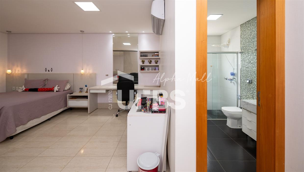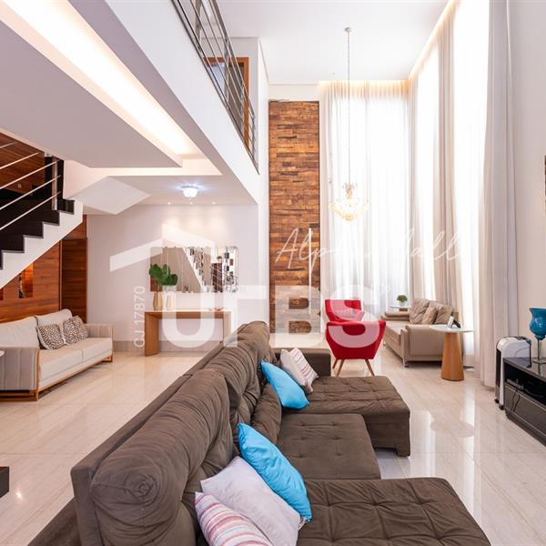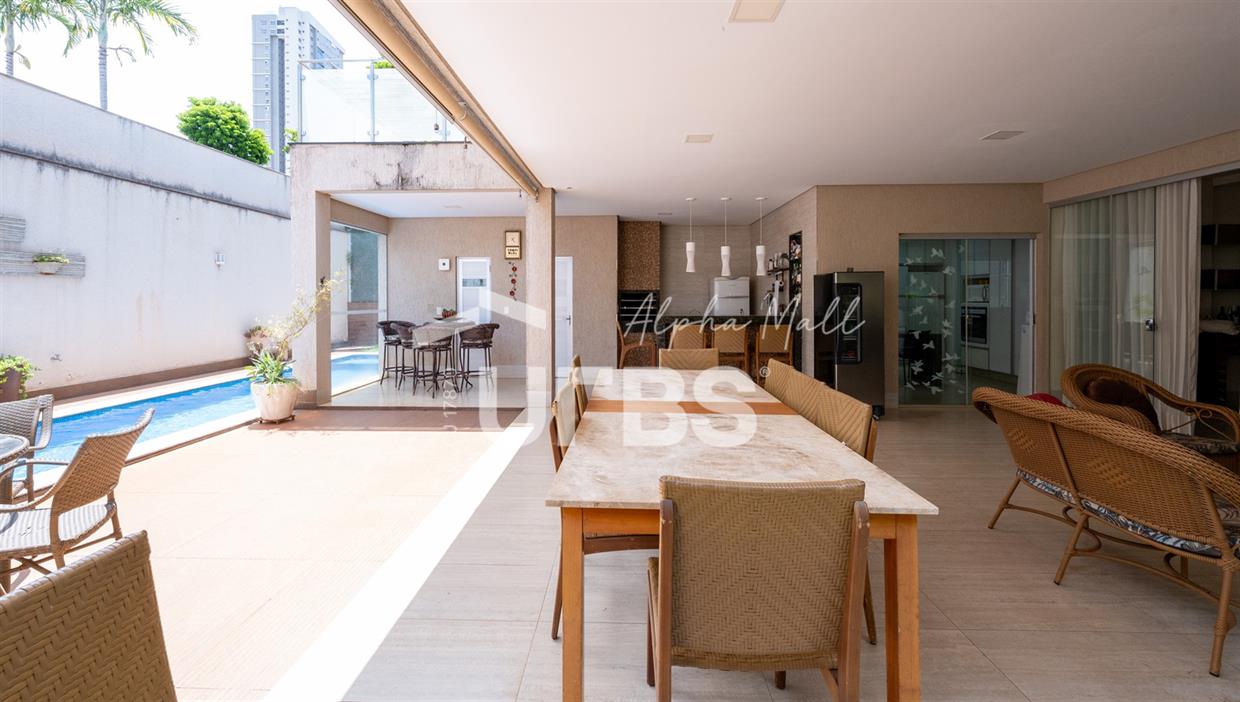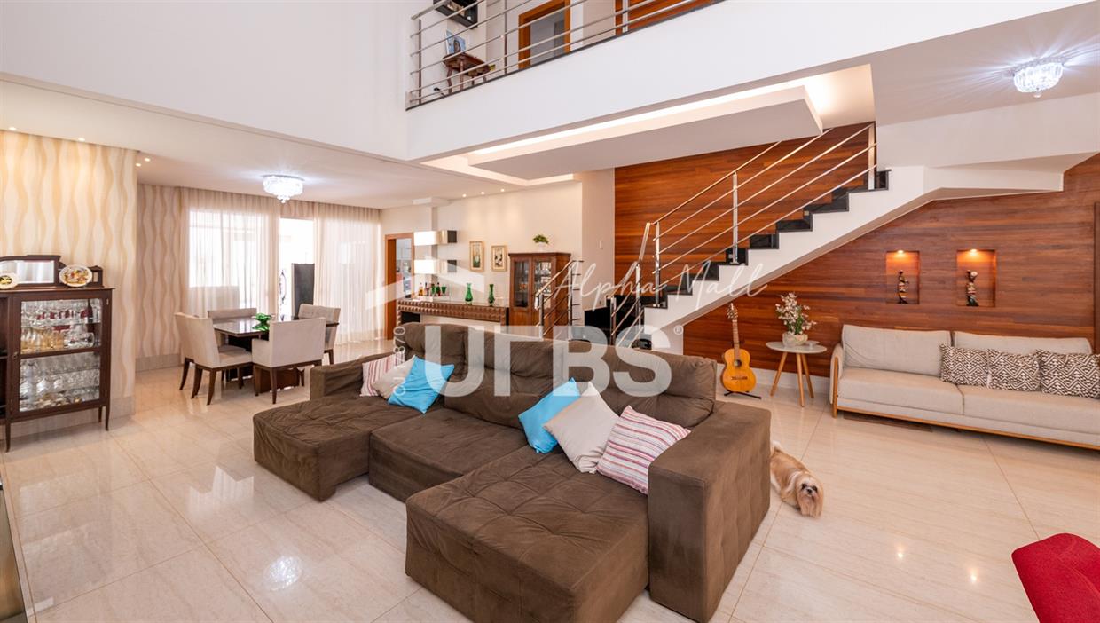 Sobrado de Esquina no Alphaville Araguaia – Sofisticação e Lazer Completo Descubra este belíssimo sobrado de esquina no Alphaville Araguaia, que une design moderno, conforto e lazer exclusivo em cada detalhe. São 550m² de terreno e 450m² de construção, projetados para oferecer praticidade e elegância em um dos condomínios mais desejados da região. No pavimento térreo, o living com pé-direito duplo impressiona pela amplitude e integração aos ambientes. A casa conta com 5 suítes, sendo 1 no térreo e 4 no andar superior. A varanda gourmet, equipada com churrasqueira a carvão, é perfeita para receber amigos com conforto em qualquer estação. A cozinha completa ao lado da varanda gourmet alia sofisticação e funcionalidade. Na área externa, o lazer é um espetáculo à parte: piscina aquecida, sauna molhada e muito espaço para relaxar e aproveitar ao máximo os dias de sol. O imóvel conta com usina fotovoltaica e poço artesiano. A garagem comporta até 4 veículos com total comodidade. Um imóvel que traduz qualidade de vida, exclusividade e requinte em cada detalhe.