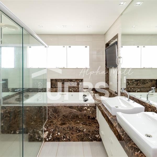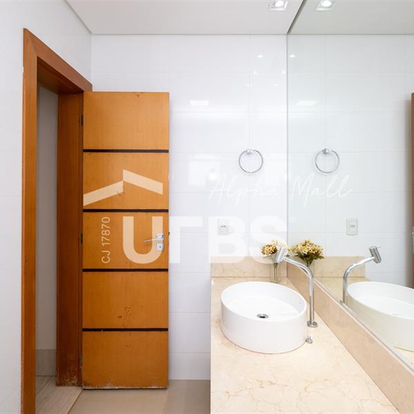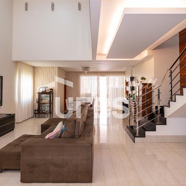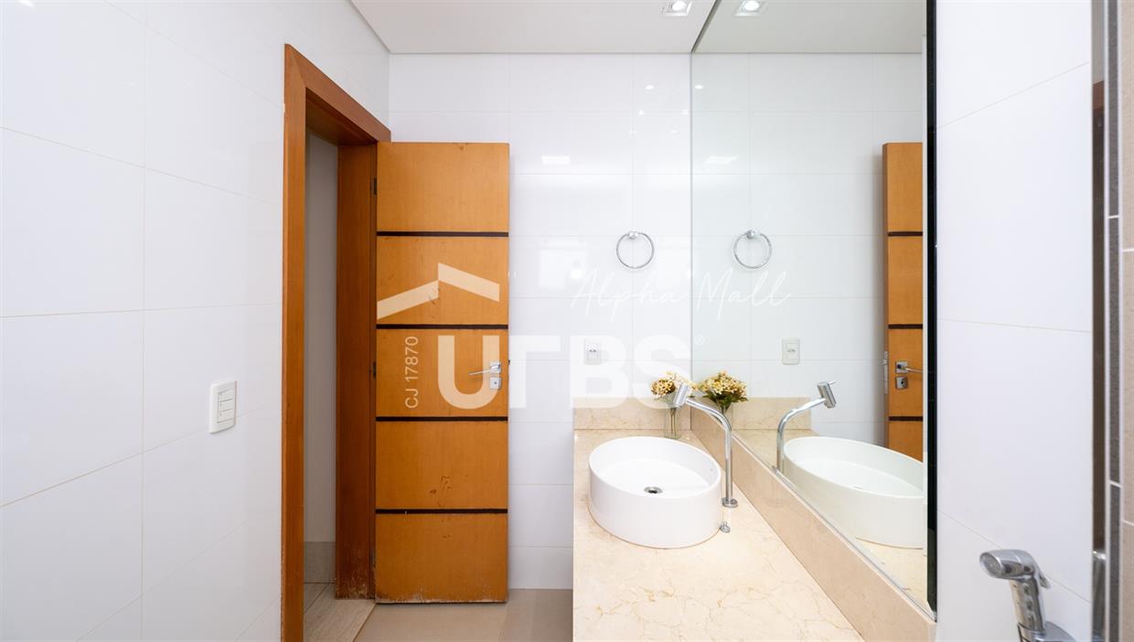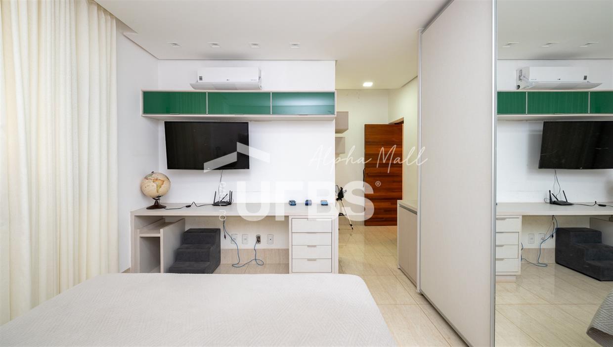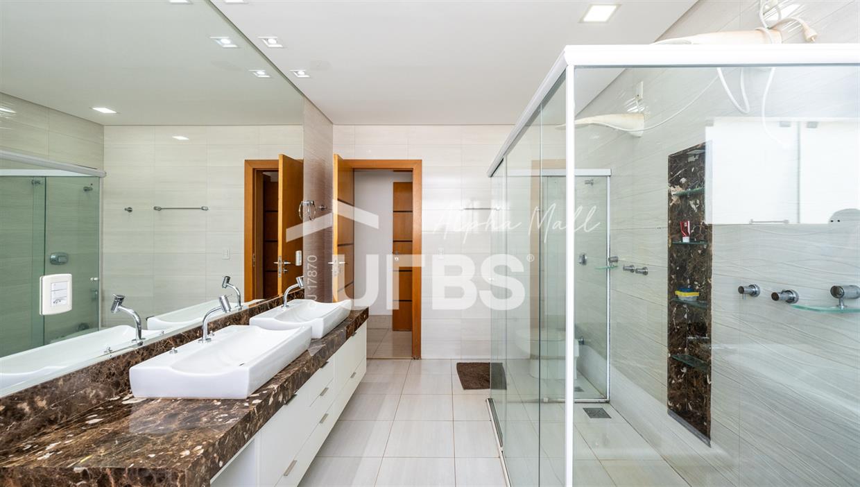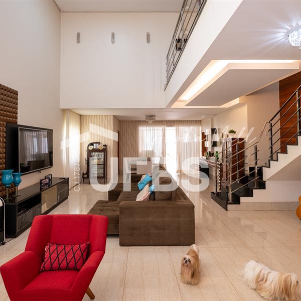 Sobrado de Esquina no Alphaville Araguaia – Sofisticação e Lazer Completo Descubra este belíssimo sobrado de esquina no Alphaville Araguaia, que une design moderno, conforto e lazer exclusivo em cada detalhe. São 550m² de terreno e 450m² de construção, projetados para oferecer praticidade e elegância em um dos condomínios mais desejados da região. No pavimento térreo, o living com pé-direito duplo impressiona pela amplitude e integração aos ambientes. A casa conta com 5 suítes, sendo 1 no térreo e 4 no andar superior. A varanda gourmet, equipada com churrasqueira a carvão, é perfeita para receber amigos com conforto em qualquer estação. A cozinha completa ao lado da varanda gourmet alia sofisticação e funcionalidade. Na área externa, o lazer é um espetáculo à parte: piscina aquecida, sauna molhada e muito espaço para relaxar e aproveitar ao máximo os dias de sol. O imóvel conta com usina fotovoltaica e poço artesiano. A garagem comporta até 4 veículos com total comodidade. Um imóvel que traduz qualidade de vida, exclusividade e requinte em cada detalhe.