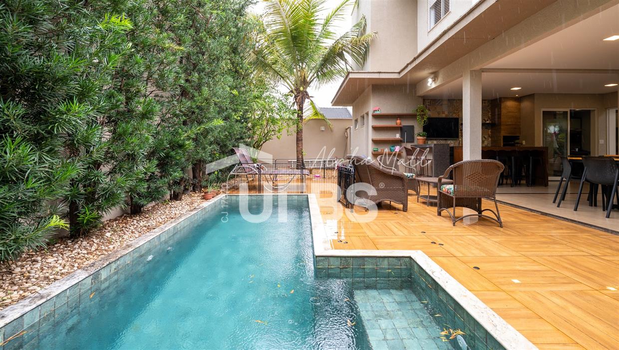 NÃO AUTORIZADO PARA ANÚNCIO Descubra o sobrado dos seus sonhos no condomínio Jardins Valência, em Goiânia, onde luxo e sofisticação se encontram em um terreno generoso de 454,34 m² e área construída de 325 m². Térreo Integrado e Funcional No térreo, home office dedicado facilita o trabalho remoto, lavabo elegante recebe visitas com requinte, e uma suíte para hóspedes garante conforto total. A sala imponente com pé direito duplo cria ambientes amplos e luminosos, enquanto a cozinha com bancada gourmet transita para a lavanderia prática. Lazer Premium Externo A área gourmet externa destaca churrasqueira robusta, piscina aquecida para uso o ano todo e jardim com irrigação automatizada, perfeita para momentos em família ou eventos sofisticados. Suítes de Alto Padrão No primeiro andar, quatro suítes amplas incluem a master com closet exclusivo e roupeiros planejados em todas, priorizando privacidade e organização impecável. São cinco suítes no total, distribuídas para acessibilidade e luxo cotidiano. Localização Privilegiada Situado na Av. Diógenes Dolival Sampaio, o Jardins Valência oferece acesso fácil a comércios variados e pontos estratégicos da cidade, próximo a outros condomínios de alto padrão como Jardins Paris e Milão. Com infraestrutura completa de lazer, alamedas arborizadas e portaria inspirada em Valência, Espanha, é ideal para famílias que buscam exclusividade e segurança 24 horas. Agende sua visita agora mesmo!
