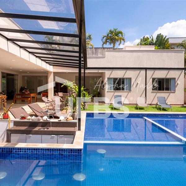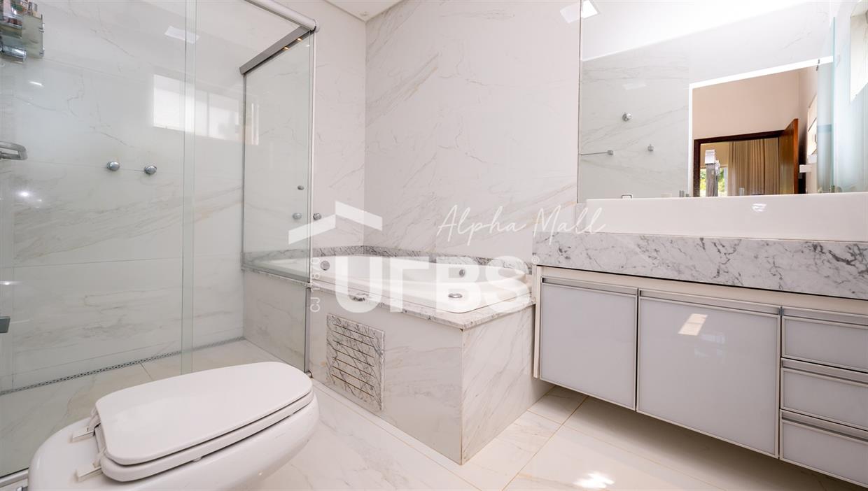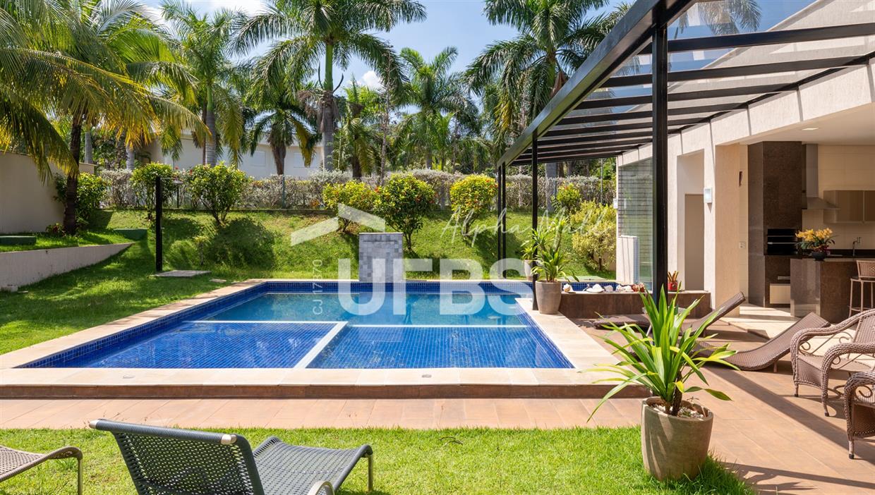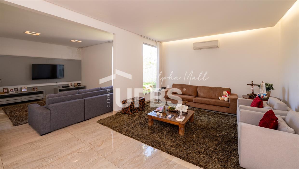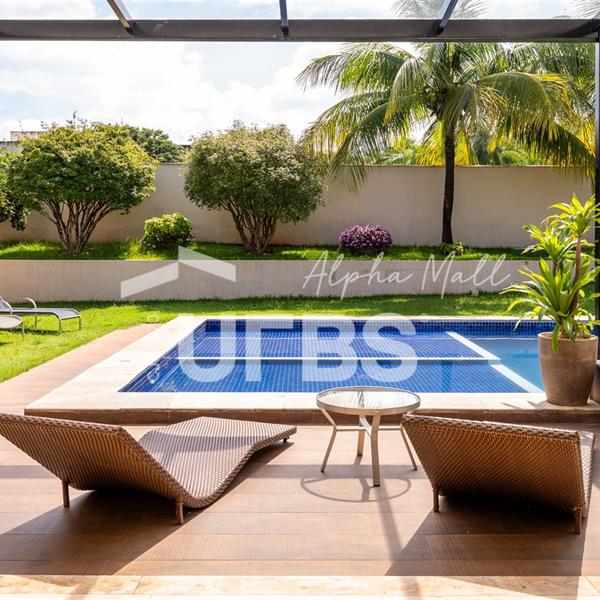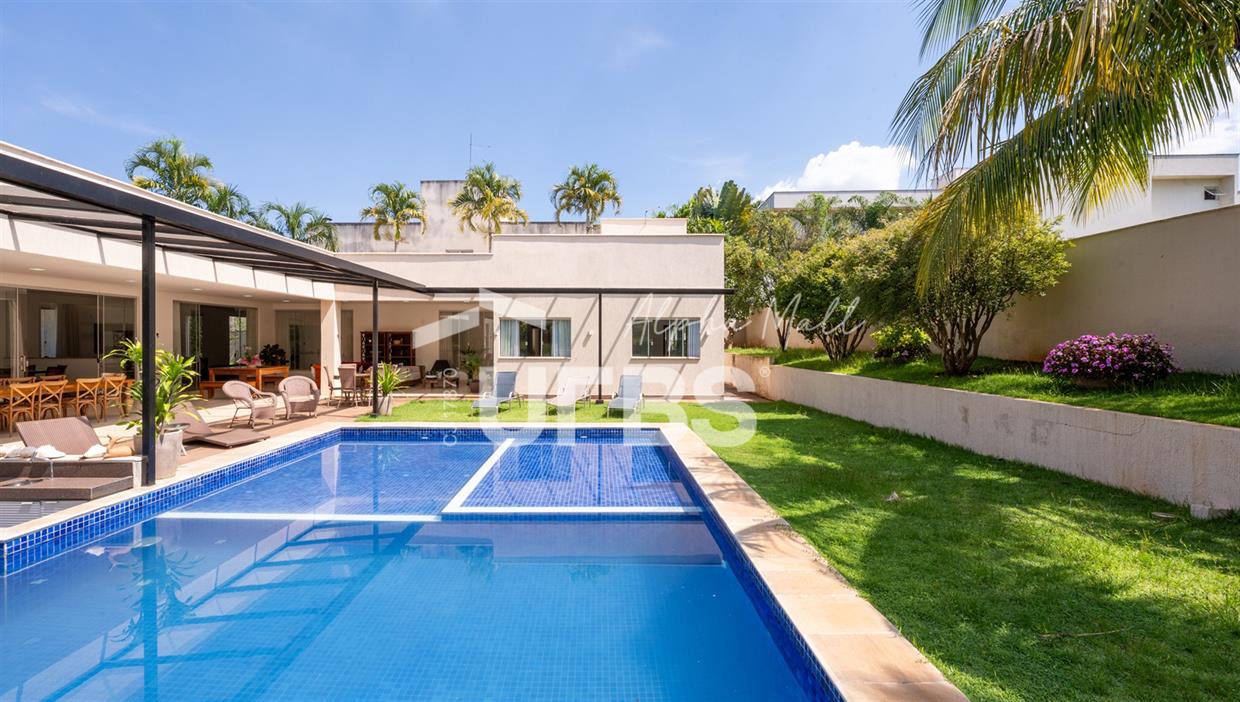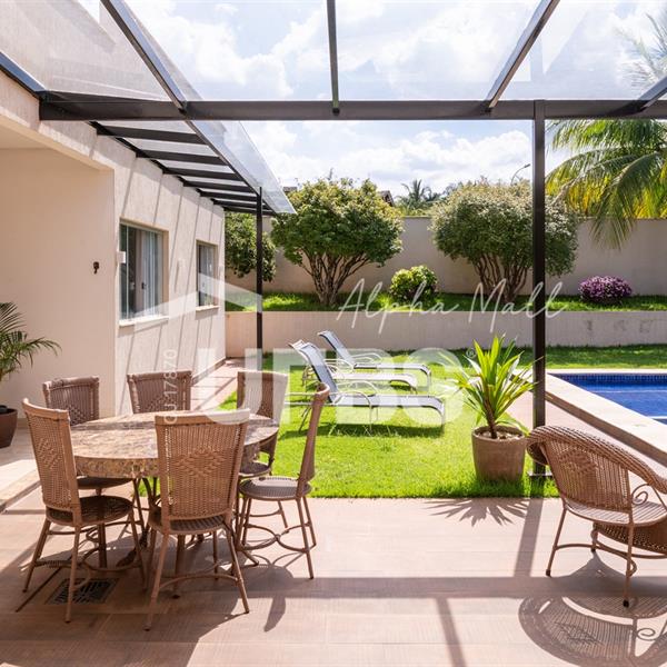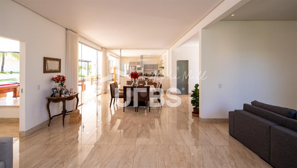 Casa Térrea de Esquina no Alphaville GoiásLocalizada no prestigiado condomínio Alphaville Goiás, esta casa térrea de esquina une imponência, funcionalidade e lazer completo em um projeto cuidadosamente planejado. A área íntima conta com 04 quartos, sendo 02 suítes, com destaque para a suíte master, que oferece escritório privativo, closet e um elegante banheiro com hidromassagem — um verdadeiro refúgio de conforto e privacidade. A residência dispõe ainda de roupeiro no corredor, garantindo praticidade e organização. Os ambientes sociais são integrados e bem distribuídos, contemplando sala de TV, sala de jantar e sala de estar, além de lavabo para atender às visitas com comodidade. O grande diferencial da casa é a área de lazer, projetada para proporcionar momentos únicos de convivência e relaxamento. A piscina ampla, aquecida e com hidromassagem é integrada à sauna, criando um ambiente moderno e sofisticado. O espaço conta ainda com vestiários feminino e masculino, oferecendo total conforto aos convidados. Completam o imóvel dependência de funcionário, cozinha funcional e área de serviço reservada. Uma residência que alia elegância, lazer completo e excelente localização, ideal para quem busca qualidade de vida, conforto e exclusividade.