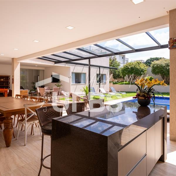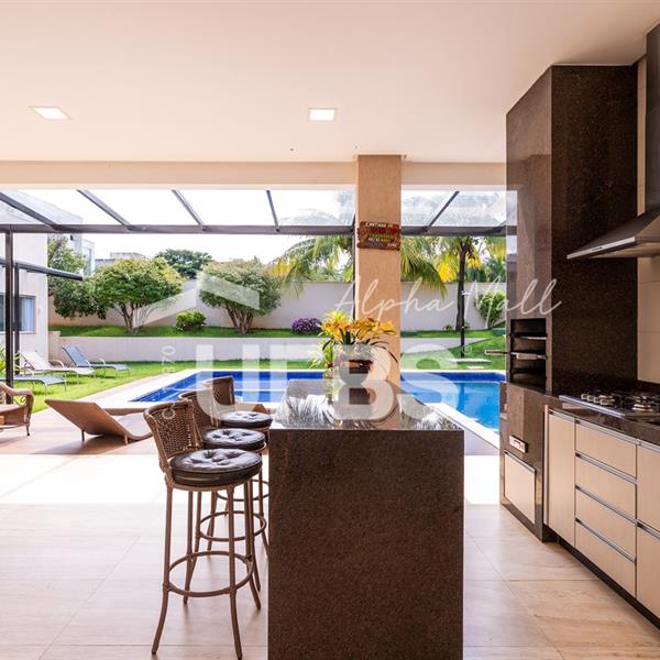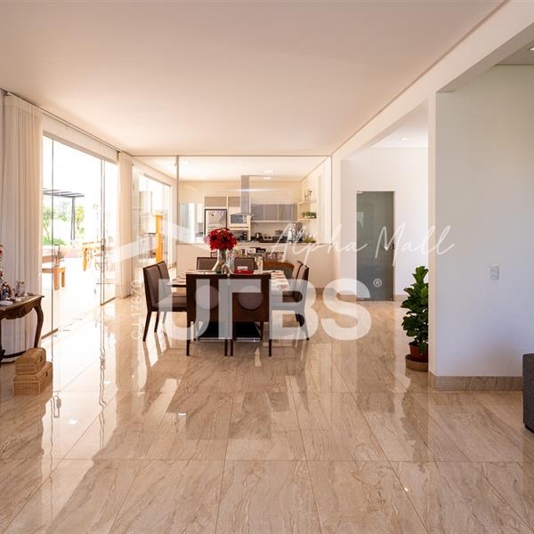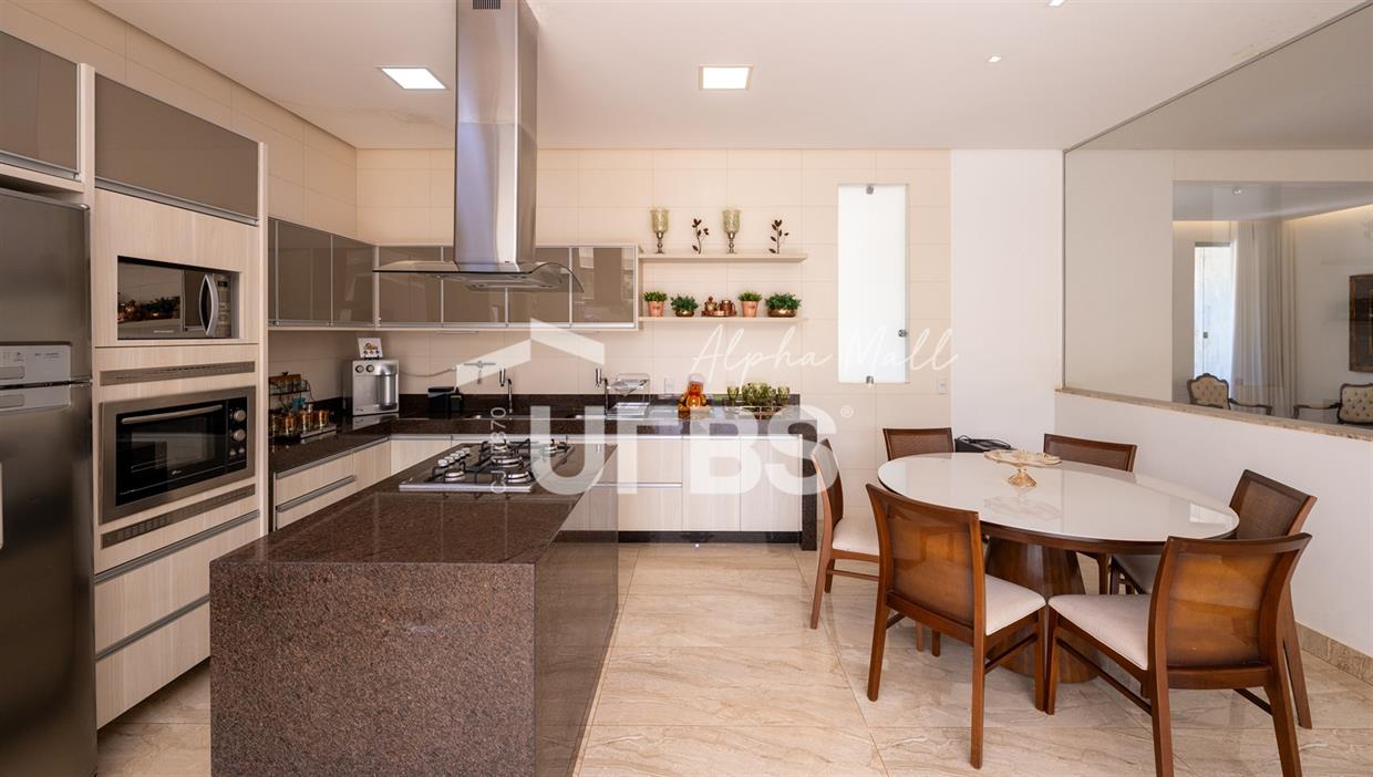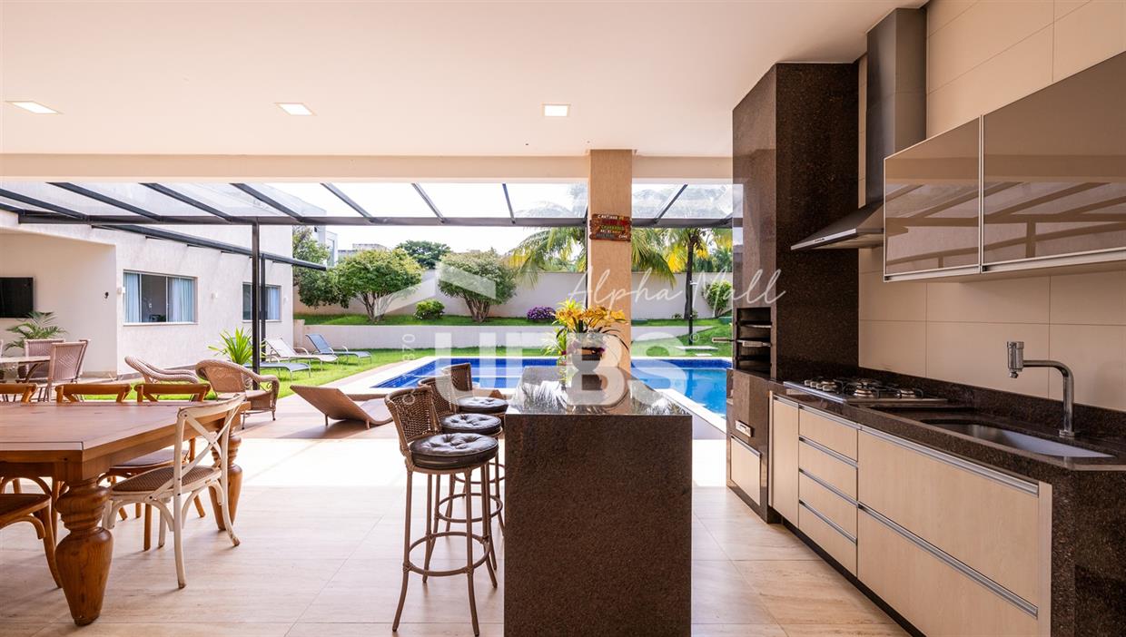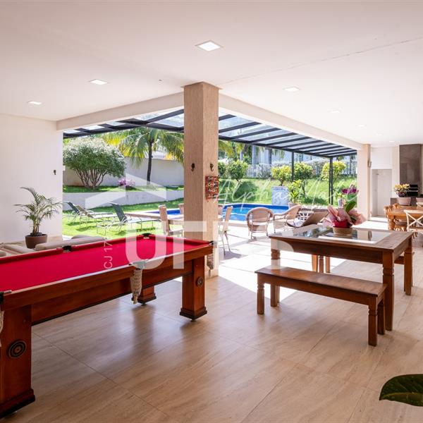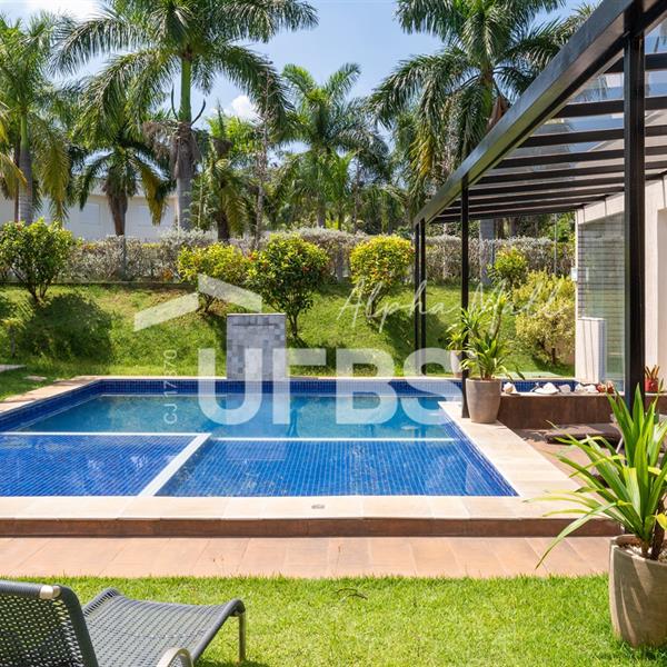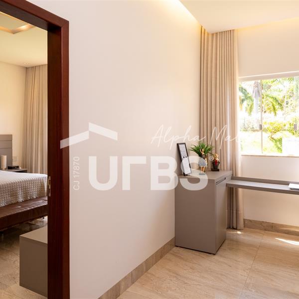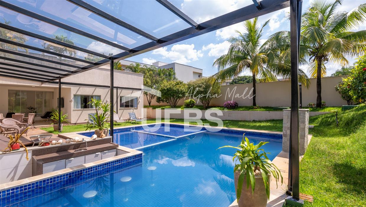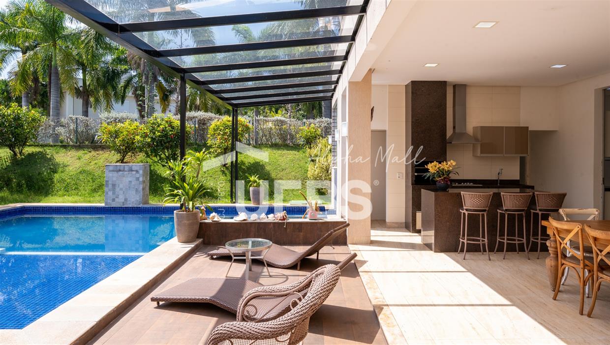 Casa Térrea de Esquina no Alphaville GoiásLocalizada no prestigiado condomínio Alphaville Goiás, esta casa térrea de esquina une imponência, funcionalidade e lazer completo em um projeto cuidadosamente planejado. A área íntima conta com 04 quartos, sendo 02 suítes, com destaque para a suíte master, que oferece escritório privativo, closet e um elegante banheiro com hidromassagem — um verdadeiro refúgio de conforto e privacidade. A residência dispõe ainda de roupeiro no corredor, garantindo praticidade e organização. Os ambientes sociais são integrados e bem distribuídos, contemplando sala de TV, sala de jantar e sala de estar, além de lavabo para atender às visitas com comodidade. O grande diferencial da casa é a área de lazer, projetada para proporcionar momentos únicos de convivência e relaxamento. A piscina ampla, aquecida e com hidromassagem é integrada à sauna, criando um ambiente moderno e sofisticado. O espaço conta ainda com vestiários feminino e masculino, oferecendo total conforto aos convidados. Completam o imóvel dependência de funcionário, cozinha funcional e área de serviço reservada. Uma residência que alia elegância, lazer completo e excelente localização, ideal para quem busca qualidade de vida, conforto e exclusividade.