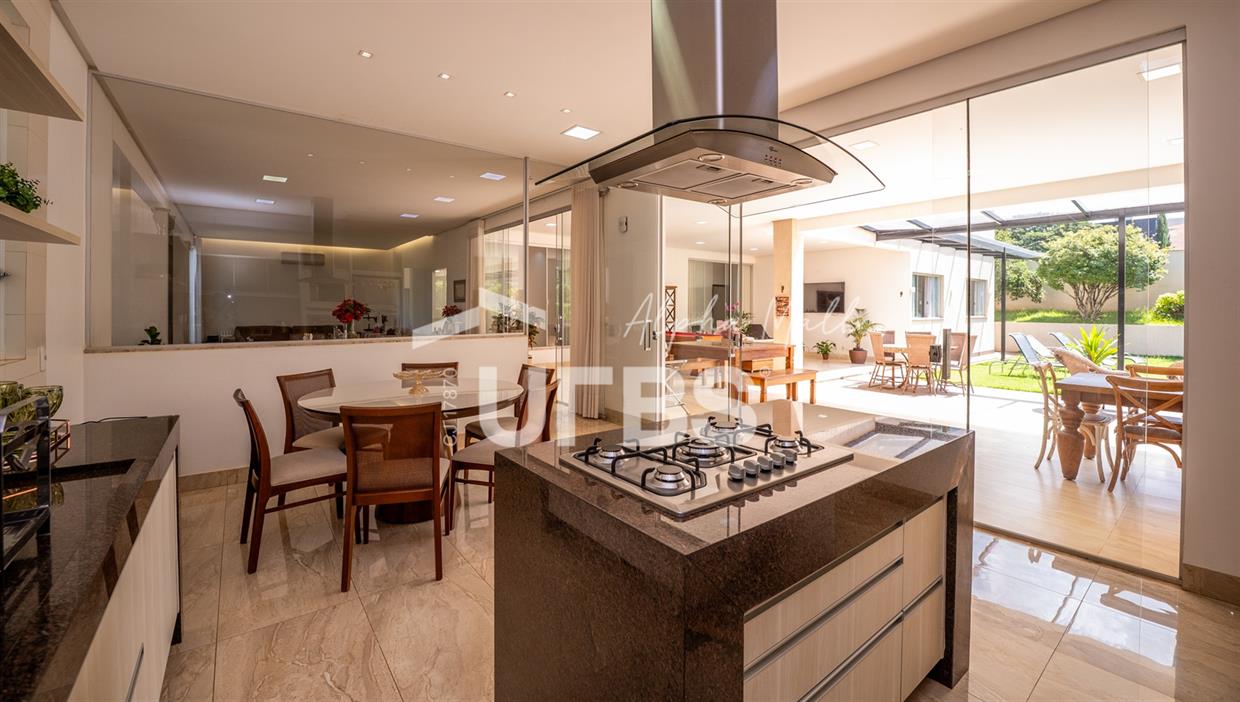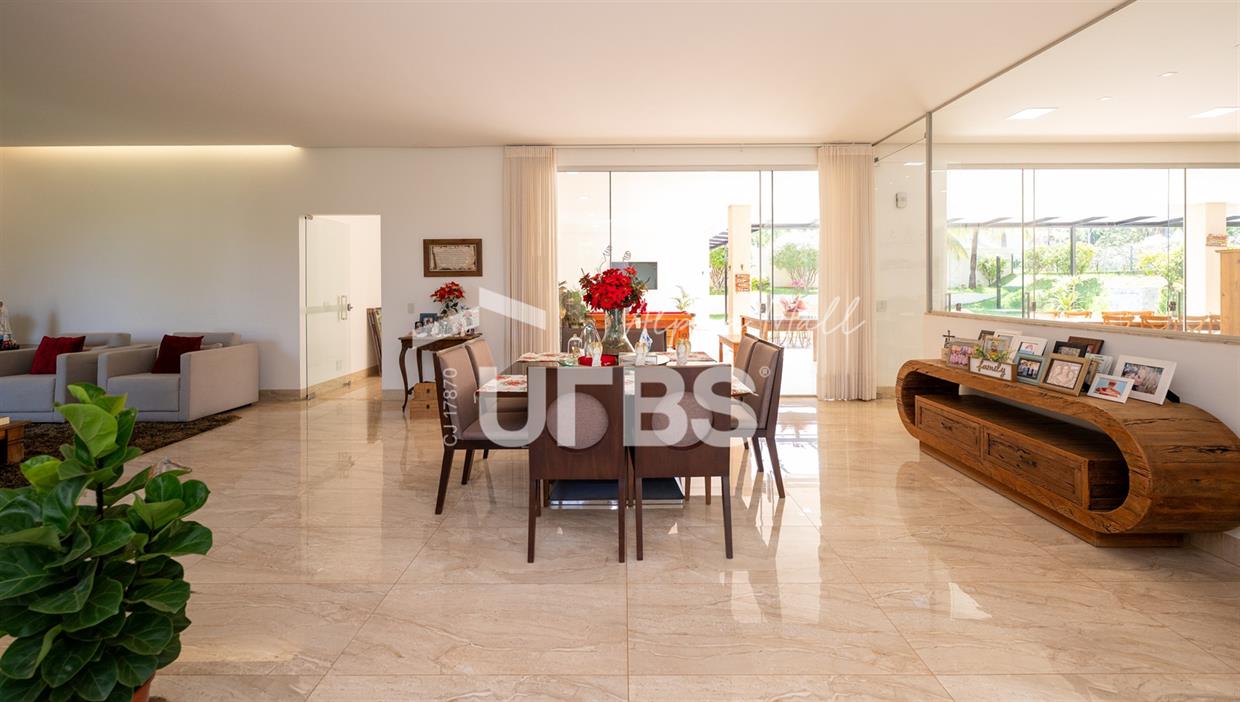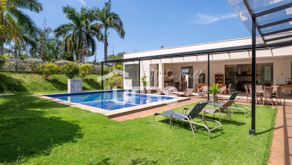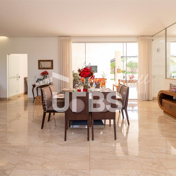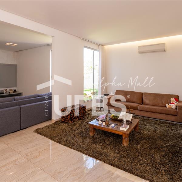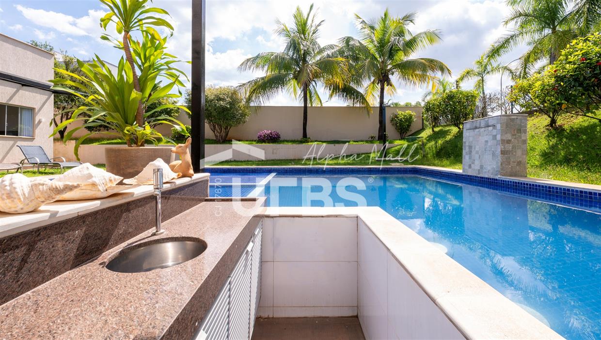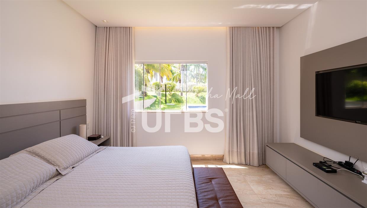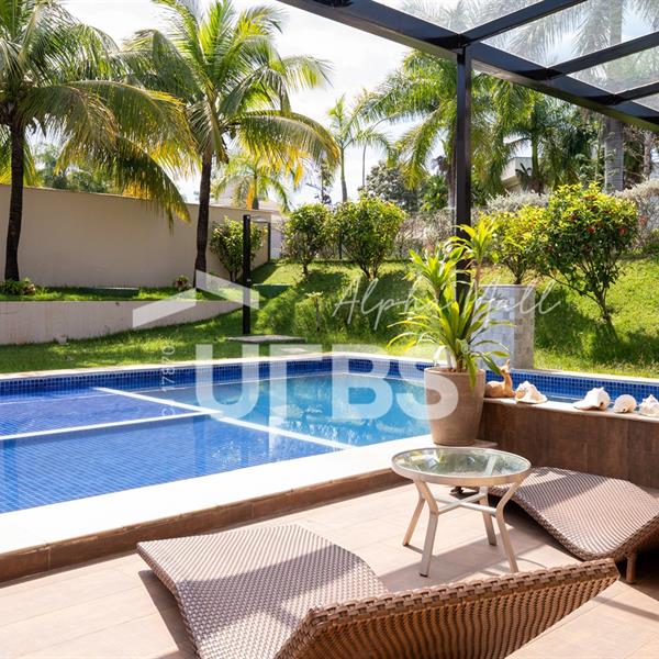Casa Térrea de Esquina no Alphaville GoiásLocalizada no prestigiado condomínio Alphaville Goiás, esta casa térrea de esquina une imponência, funcionalidade e lazer completo em um projeto cuidadosamente planejado. A área íntima conta com 04 quartos, sendo 02 suítes, com destaque para a suíte master, que oferece escritório privativo, closet e um elegante banheiro com hidromassagem — um verdadeiro refúgio de conforto e privacidade. A residência dispõe ainda de roupeiro no corredor, garantindo praticidade e organização. Os ambientes sociais são integrados e bem distribuídos, contemplando sala de TV, sala de jantar e sala de estar, além de lavabo para atender às visitas com comodidade. O grande diferencial da casa é a área de lazer, projetada para proporcionar momentos únicos de convivência e relaxamento. A piscina ampla, aquecida e com hidromassagem é integrada à sauna, criando um ambiente moderno e sofisticado. O espaço conta ainda com vestiários feminino e masculino, oferecendo total conforto aos convidados. Completam o imóvel dependência de funcionário, cozinha funcional e área de serviço reservada. Uma residência que alia elegância, lazer completo e excelente localização, ideal para quem busca qualidade de vida, conforto e exclusividade.