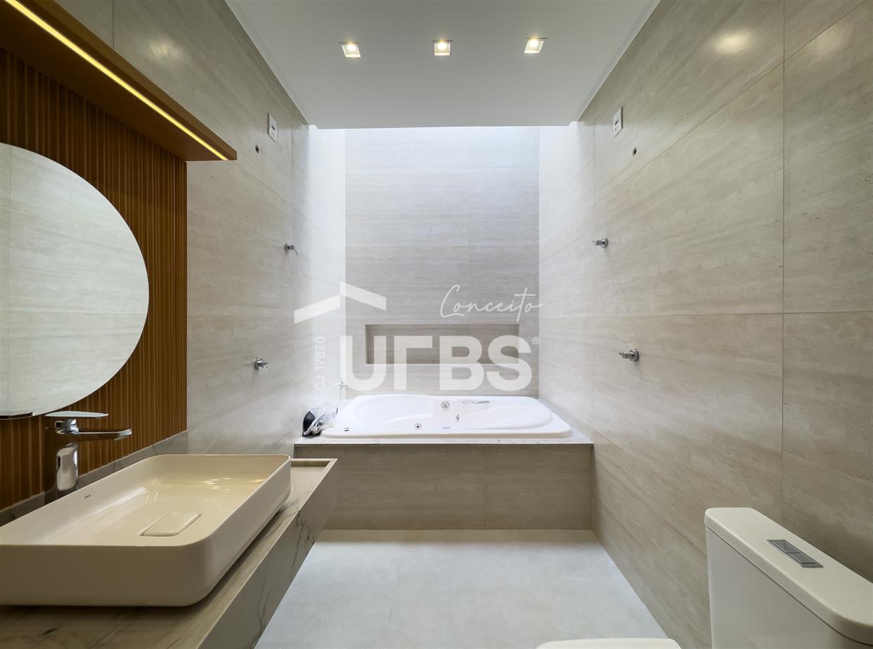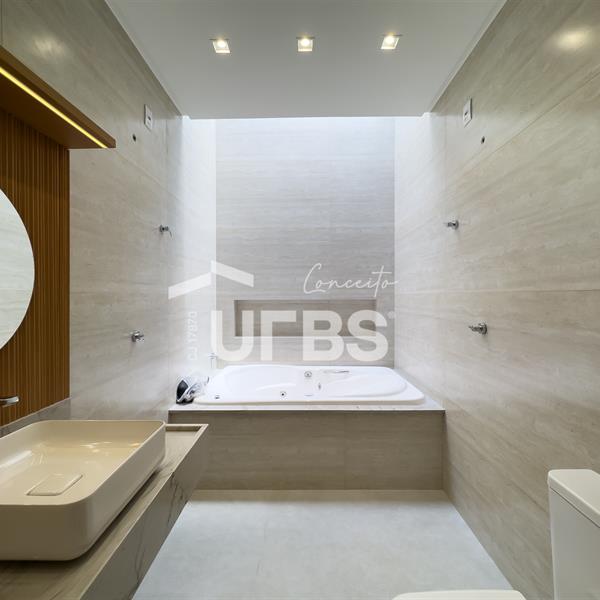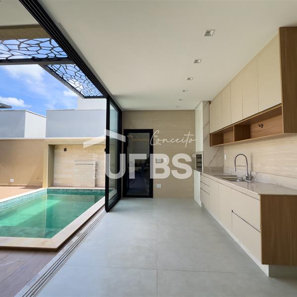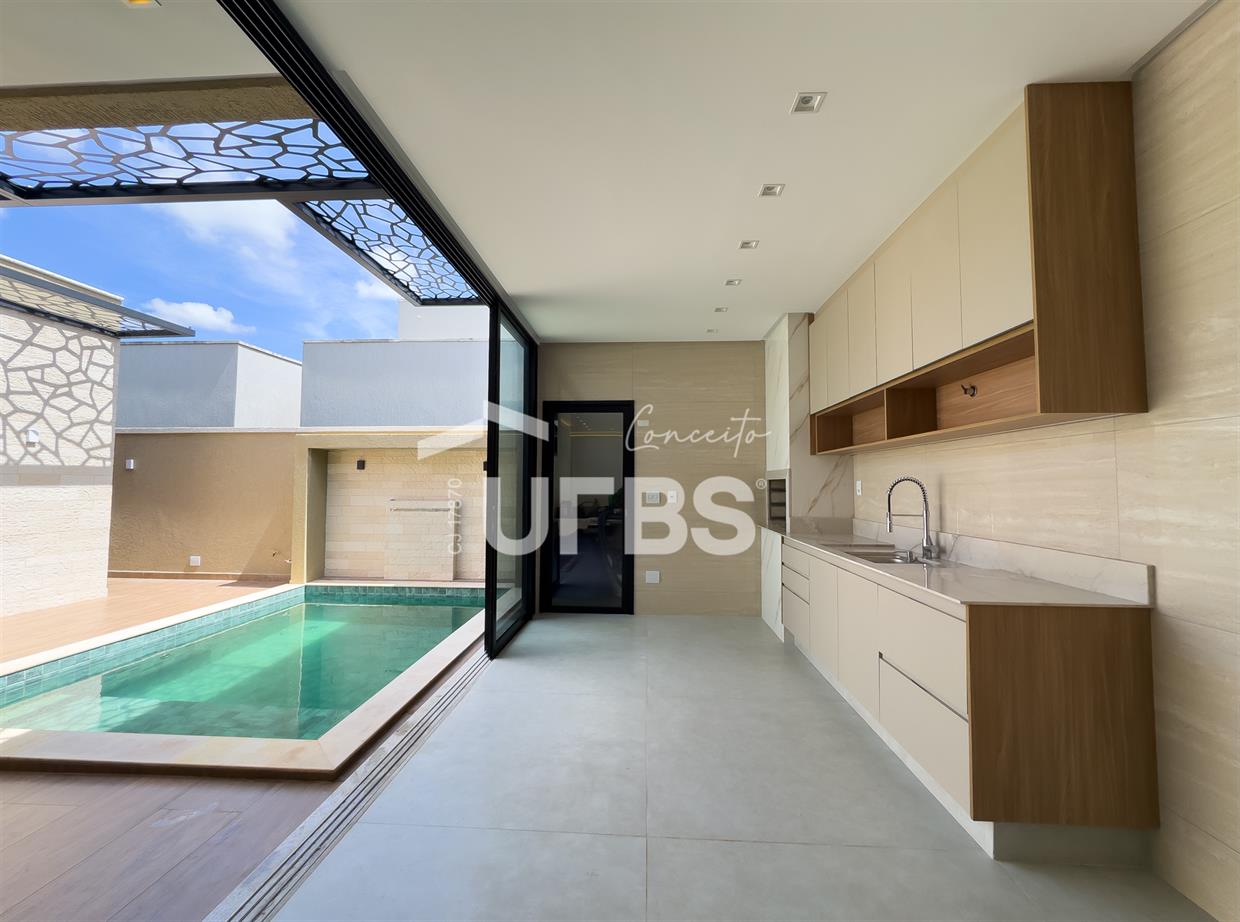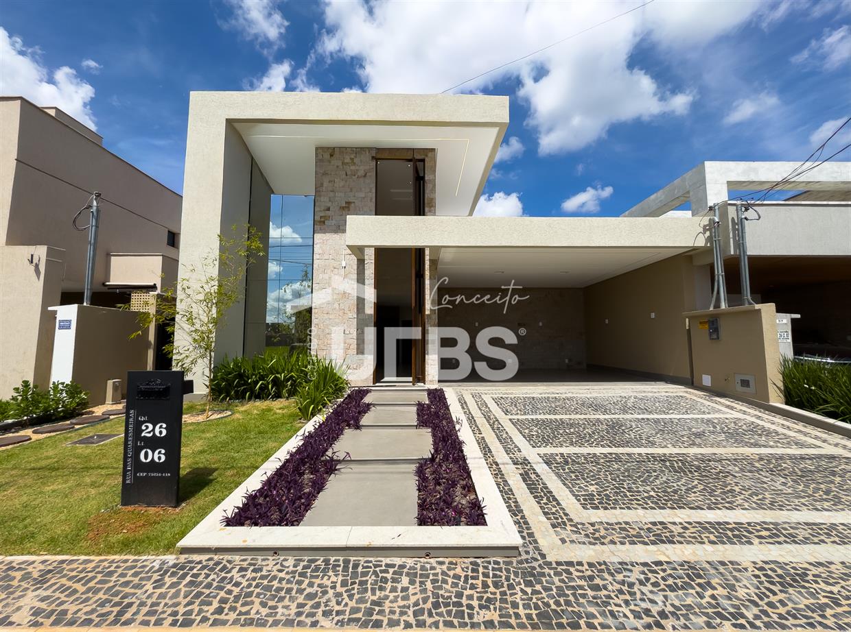 Casa térrea localizada no Jardins Bolonha, com 300 m² de área total e 165 m² de área construída, projetada para oferecer conforto, elegância e funcionalidade em cada detalhe. O imóvel conta com 3 suítes, sendo uma suíte máster com closet e banheira de hidromassagem. A área social possui uma sala de estar ampla e bem iluminada, integrada a uma cozinha planejada com armários, trazendo praticidade para o dia a dia. A área de lazer é um grande destaque, com espaço gourmet separado e equipado com armários, ideal para receber amigos e familiares. O ambiente externo conta ainda com lavabo externo, oferecendo mais comodidade para quem utiliza a área de lazer. A casa também possui piscina aquecida, garantindo momentos de lazer e conforto em qualquer época do ano. Entre os diferenciais do imóvel estão a usina fotovoltaica, que proporciona economia e sustentabilidade, armários planejados na cozinha, área gourmet e closet, além de um moderno projeto luminotécnico que valoriza todos os ambientes. A entrada principal conta com uma elegante porta em muxarabi, que traz charme e sofisticação ao projeto. O imóvel ainda possui pergolado externo, escaninho, duas vagas de garagem cobertas e o privilégio de não possuir vizinho nos fundos, garantindo mais privacidade e tranquilidade. Uma casa pensada para quem busca qualidade de vida, conforto e exclusividade dentro de um dos condomínios mais desejados da região.