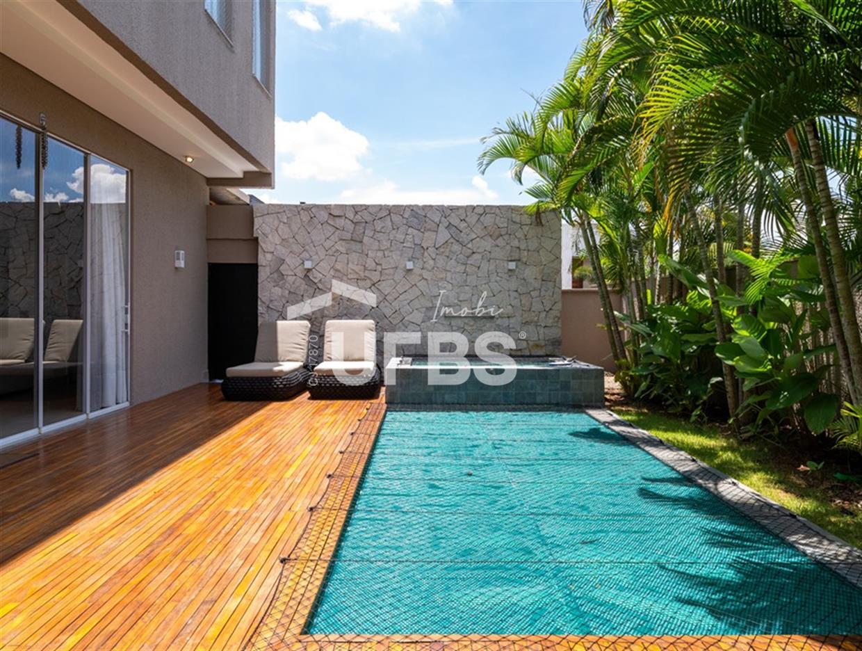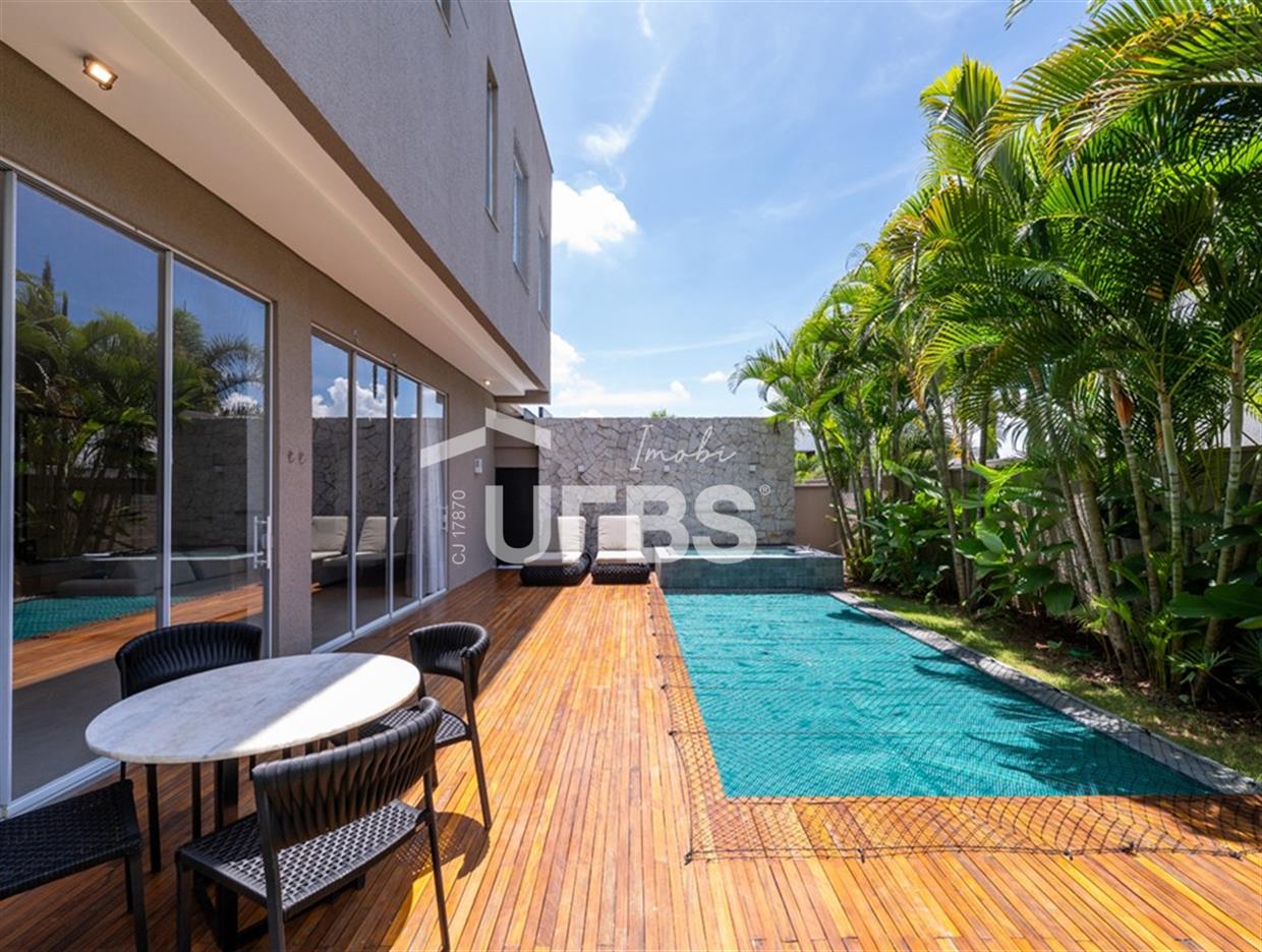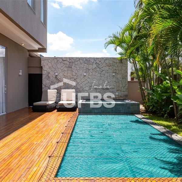 Alphaville Araguaia279 m²| 4 Suítes | 4 Vagas | MobiliadaEsta incrível casa no Alphaville Araguaia tem tudo o que você precisa para viver com conforto, luxo e sofisticação.Com 279 m² de área construída e 505 m² de terreno, tem um projeto com 4 suítes plenas, todas com acabamento de altíssimopadrão.A casa conta com um belo e espaçoso living, que integra sala de estar, sala de jantar e cozinha gourmet. O acabamento é dealto padrão, com materiais nobres que denotam elegância, charme, glamour e, claro, aconchego em cada detalhe.