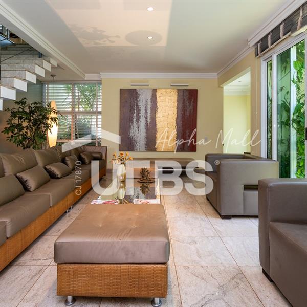Sobrado à venda no Alphaville GoiásPavimento térreo com escritório, lavabo e sala com 3 ambientes integrados a área gourmet, e piscina aquecida criando um ambiente perfeito para convivência e recepção de amigos.Projeto com 4 suítes amplas, sendo a suíte master com hidromassagem e roupeiro no hall privativo, oferecendo mais praticidade para o dia a dia.A residência também dispõe de cozinha funcional, dependência completa de funcionário, usina fotovoltaica, poço semiartesiano e irrigação automatizada no jardim.Uma ótima oportunidade para morar em um dos condomínios mais desejados e valorizados da região.