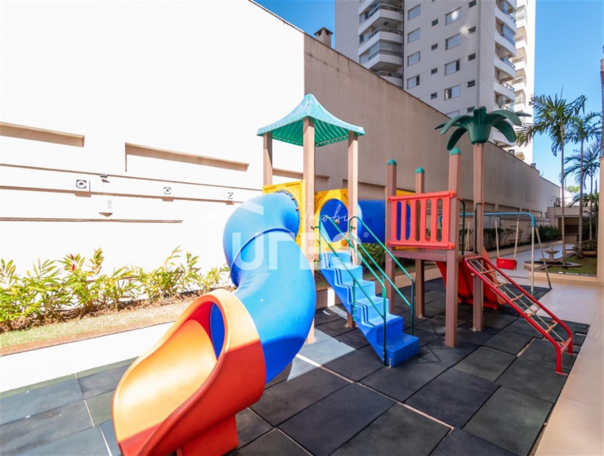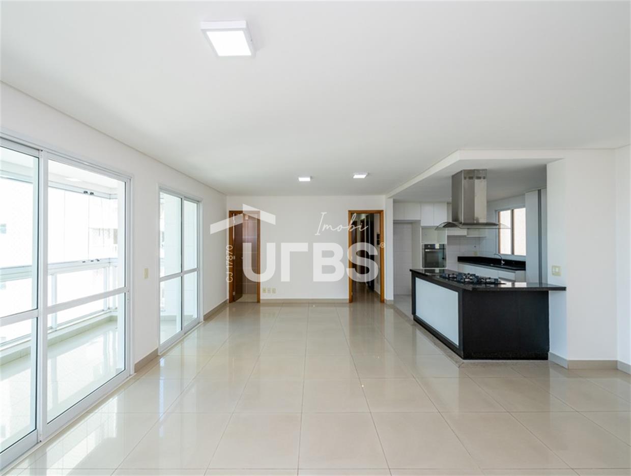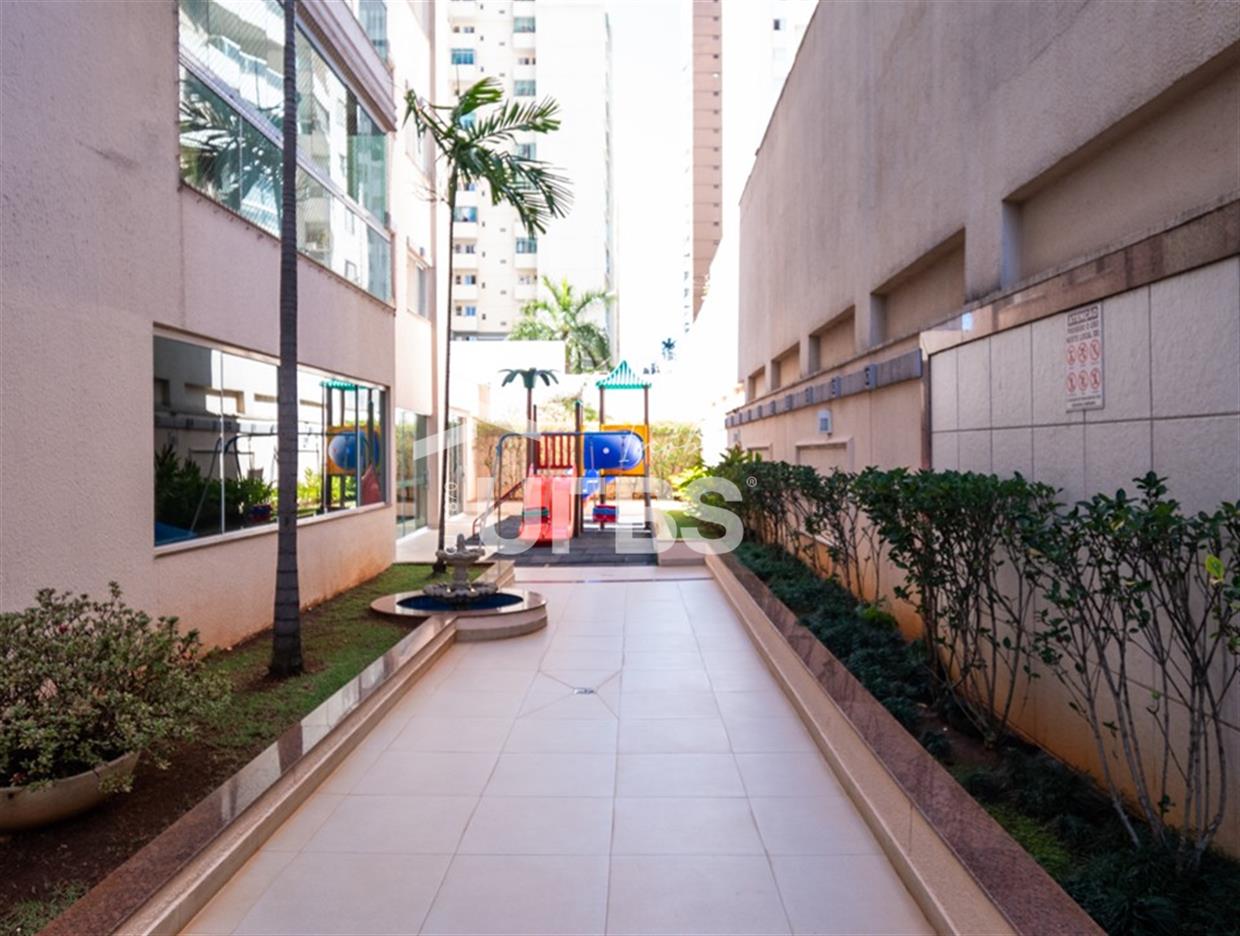 Solar Gran Bueno - Setor Serrinha Apartamento à venda no Solar Gran Bueno, localizado no alto Bueno, em frente ao Supermercado Moreira, Academia Bluefit e próximo a Avenida T-4 e ao Parque Serrinha. São 111 m² de área privativa, planta modificada para 2 suítes plenas sendo a máster com closet, cozinha integrada, sala para 2 ambientes, varanda, lavabo e área de serviço com banheiro de apoio. Apartamento em andar alto, fachada sul, completo em marcenaria e projeto luminotécnico. Prédio com portaria 24 horas e lazer completo. 2 vagas de garagem.