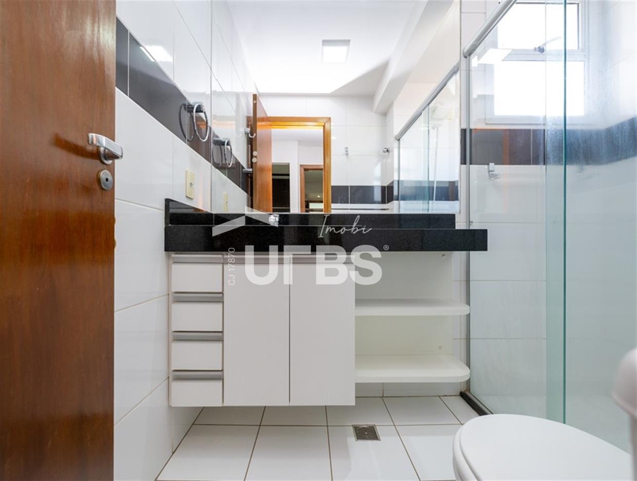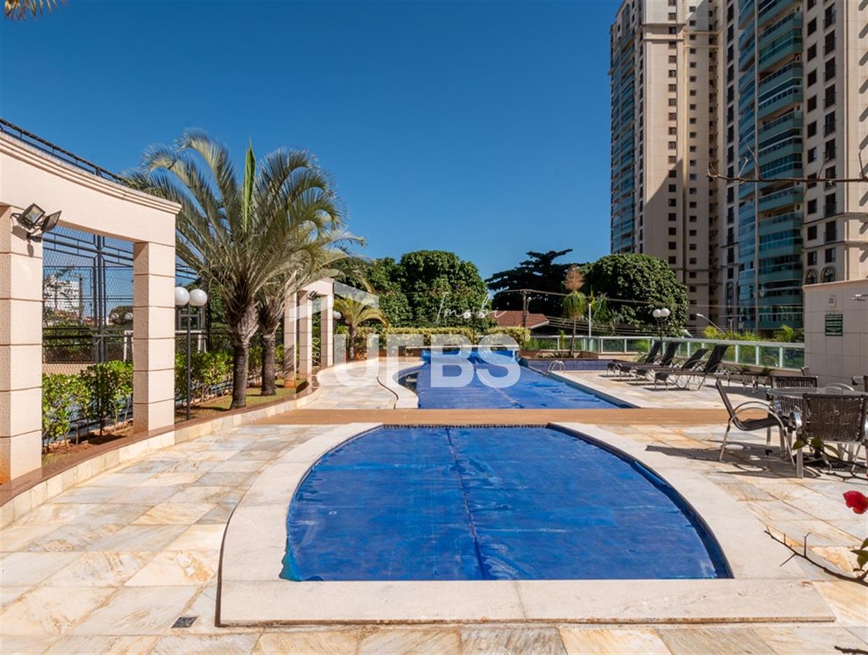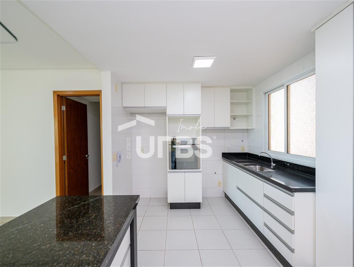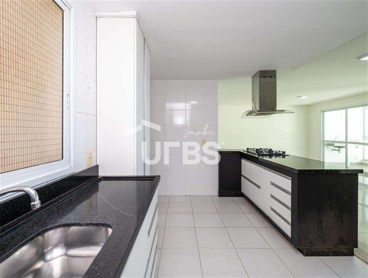 Solar Gran Bueno - Setor Serrinha Apartamento à venda no Solar Gran Bueno, localizado no alto Bueno, em frente ao Supermercado Moreira, Academia Bluefit e próximo a Avenida T-4 e ao Parque Serrinha. São 111 m² de área privativa, planta modificada para 2 suítes plenas sendo a máster com closet, cozinha integrada, sala para 2 ambientes, varanda, lavabo e área de serviço com banheiro de apoio. Apartamento em andar alto, fachada sul, completo em marcenaria e projeto luminotécnico. Prédio com portaria 24 horas e lazer completo. 2 vagas de garagem.
