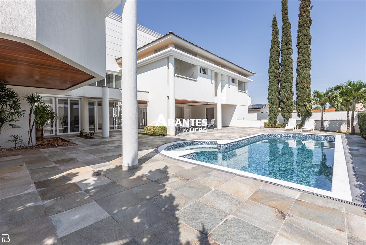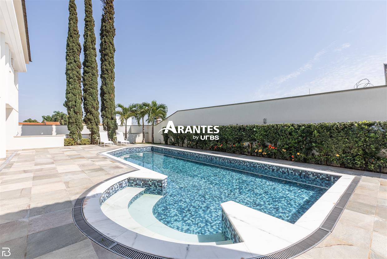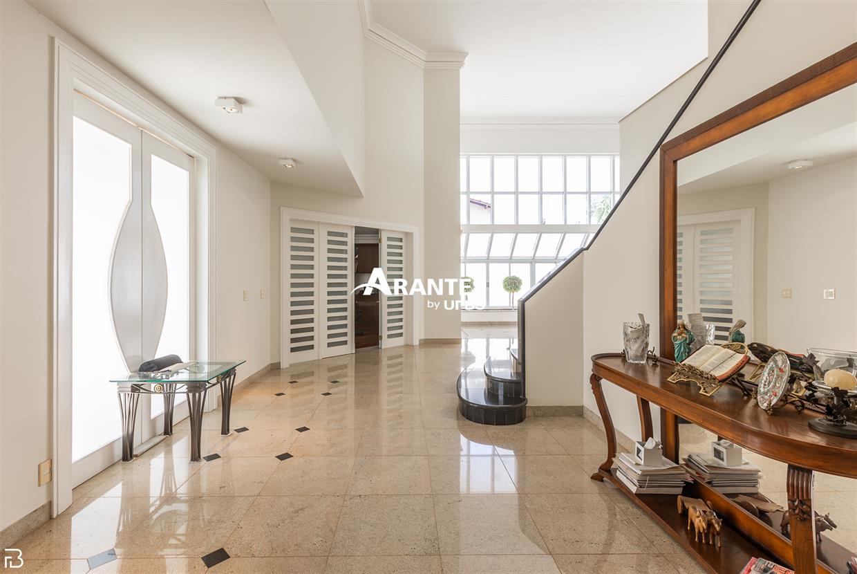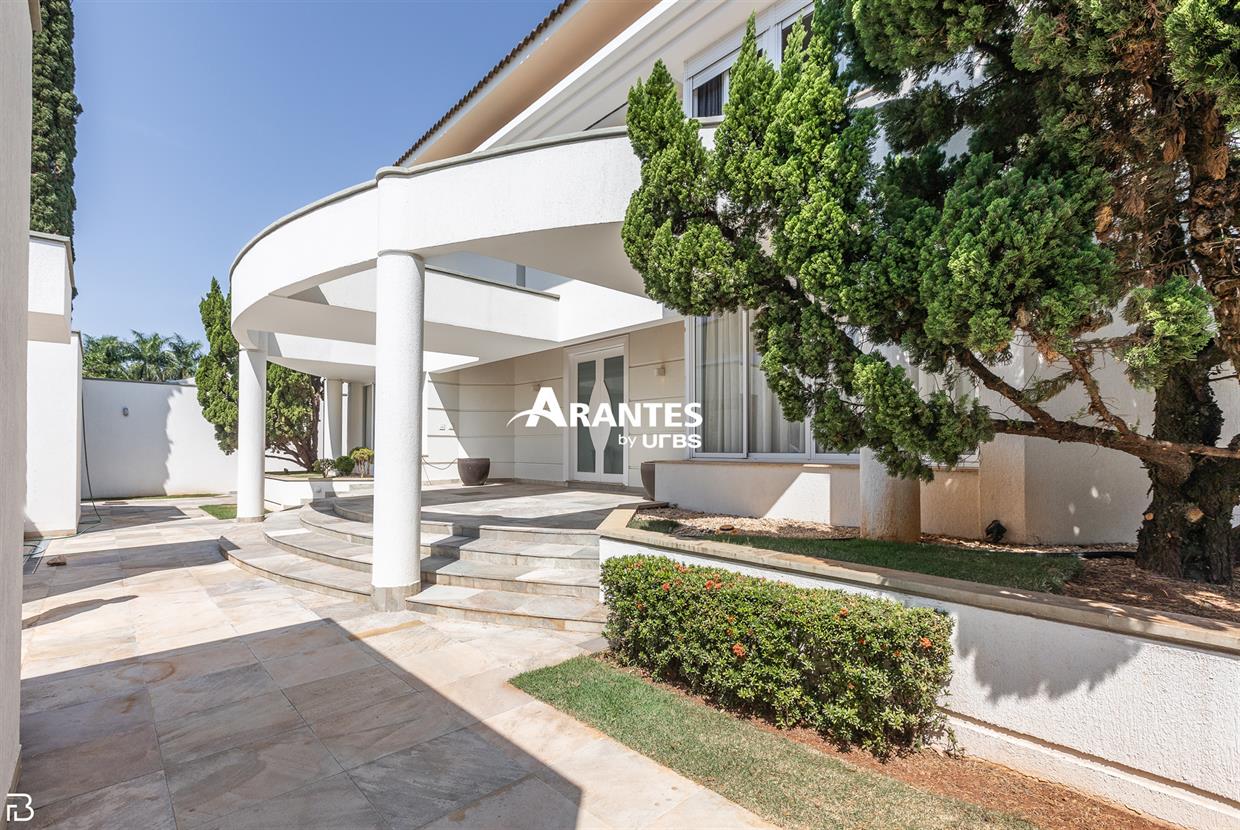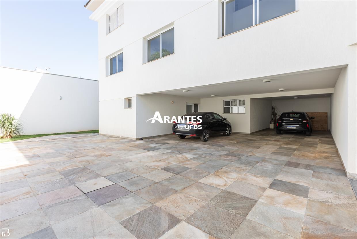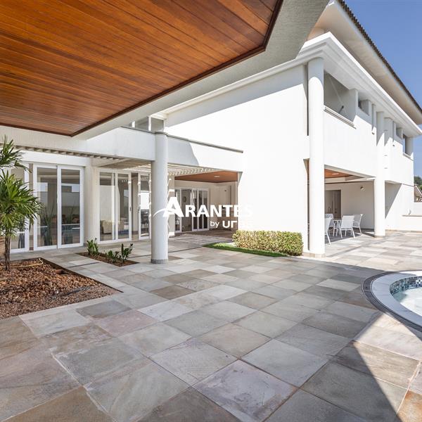 Excelente casa estilo sobrado, em alto padrão na Zona Sul de Uberlândia, com aproximadamente 850m² de área construída, em excelente acabamento, toda montada com armários planejados, luminárias e painéis, sendo o 1° piso com varanda gourmet com mais de 100m², piscina aquecida com raia, sauna para 10 pessoas, cozinha ampla com 02 despensas, área de serviço, sala de jantar, sala de apoios e mais sala em 02 ambientes, sala de tv, lavabo, escritório amplo, adega. O 2° piso com 04 suítes amplas com sacada, sendo 01 com mais de 60m² toda em granito, sala íntima, rouparia, vaga de garagem para 08 carros. Área total de 1.100m².