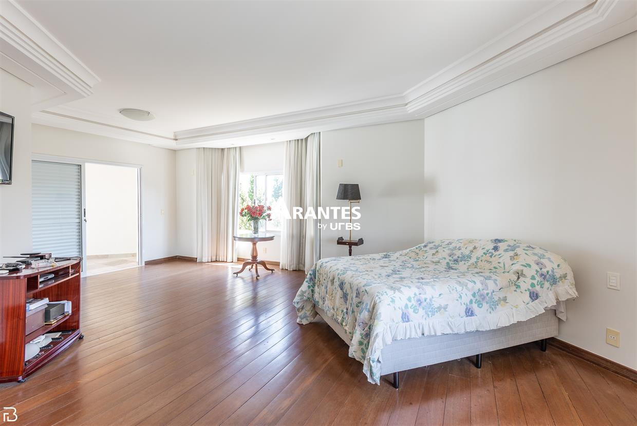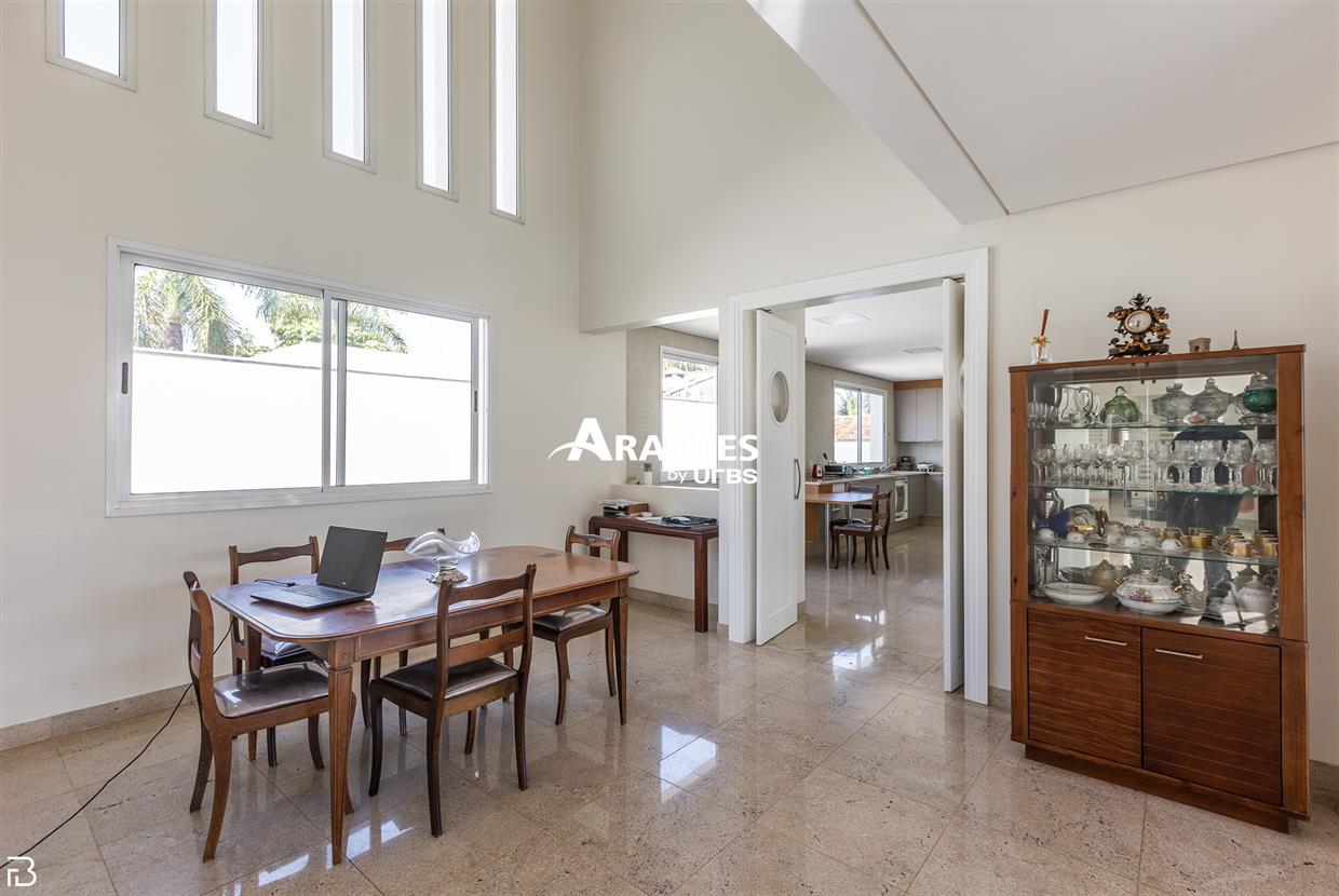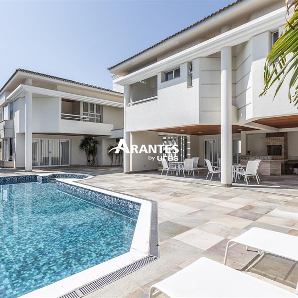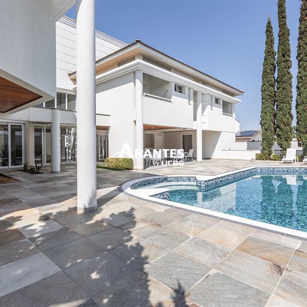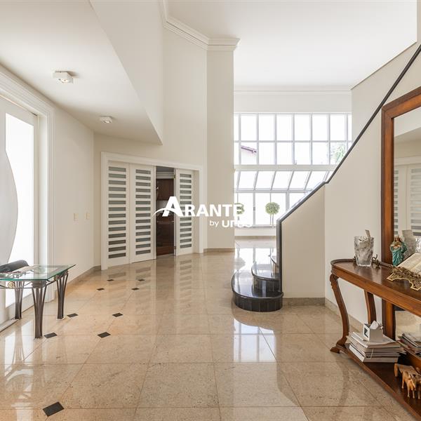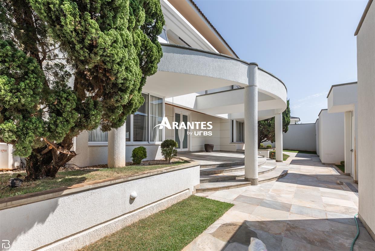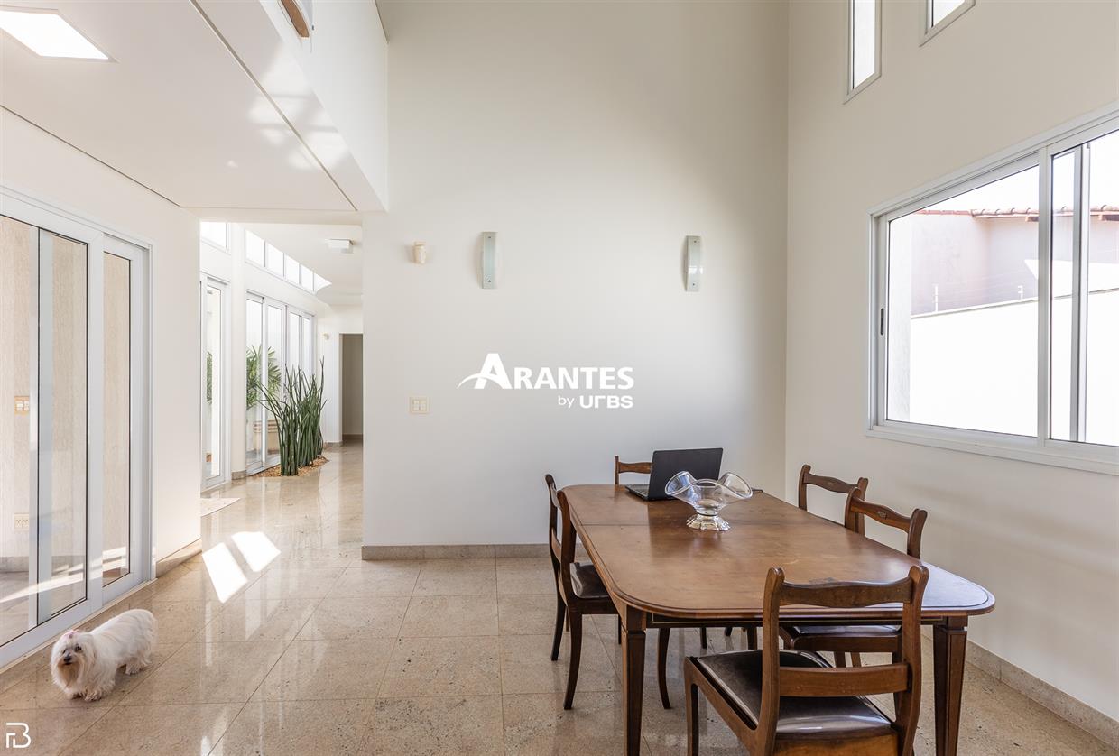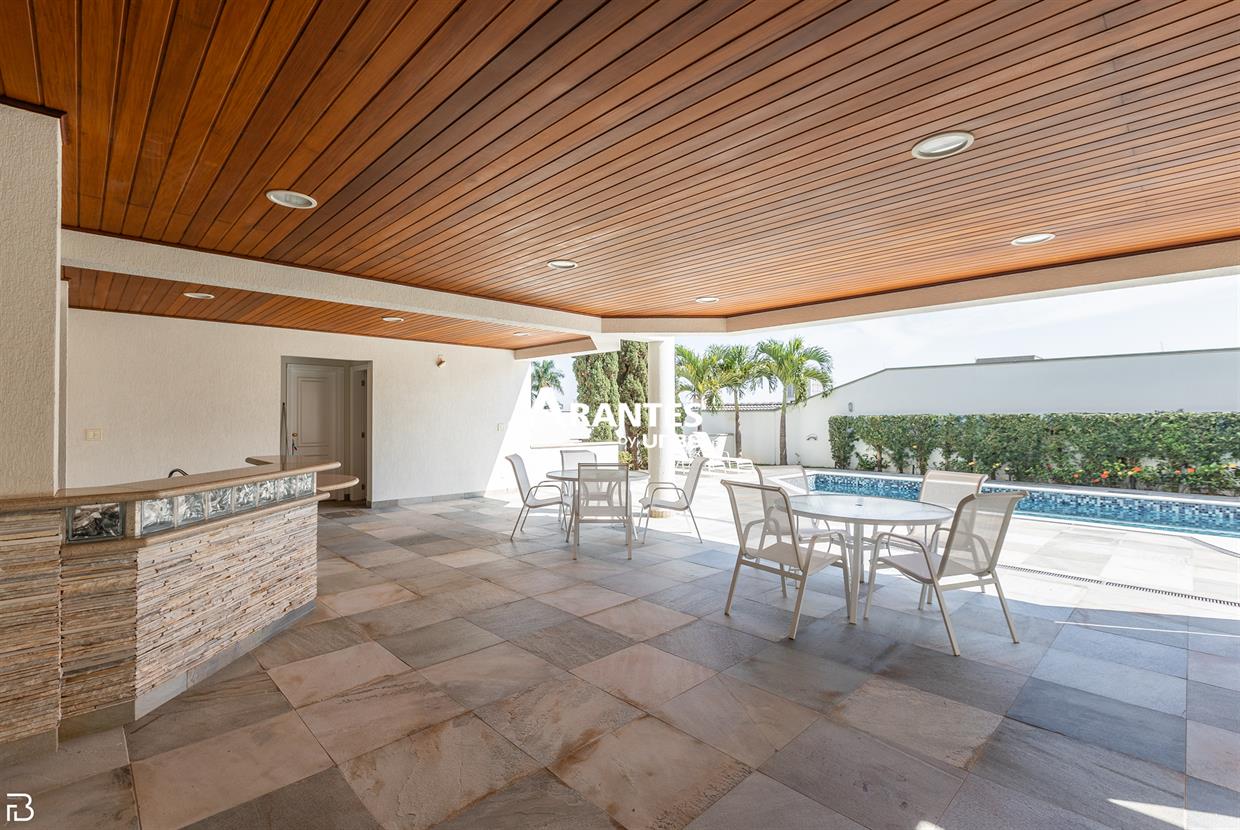 Excelente casa estilo sobrado, em alto padrão na Zona Sul de Uberlândia, com aproximadamente 850m² de área construída, em excelente acabamento, toda montada com armários planejados, luminárias e painéis, sendo o 1° piso com varanda gourmet com mais de 100m², piscina aquecida com raia, sauna para 10 pessoas, cozinha ampla com 02 despensas, área de serviço, sala de jantar, sala de apoios e mais sala em 02 ambientes, sala de tv, lavabo, escritório amplo, adega. O 2° piso com 04 suítes amplas com sacada, sendo 01 com mais de 60m² toda em granito, sala íntima, rouparia, vaga de garagem para 08 carros. Área total de 1.100m².