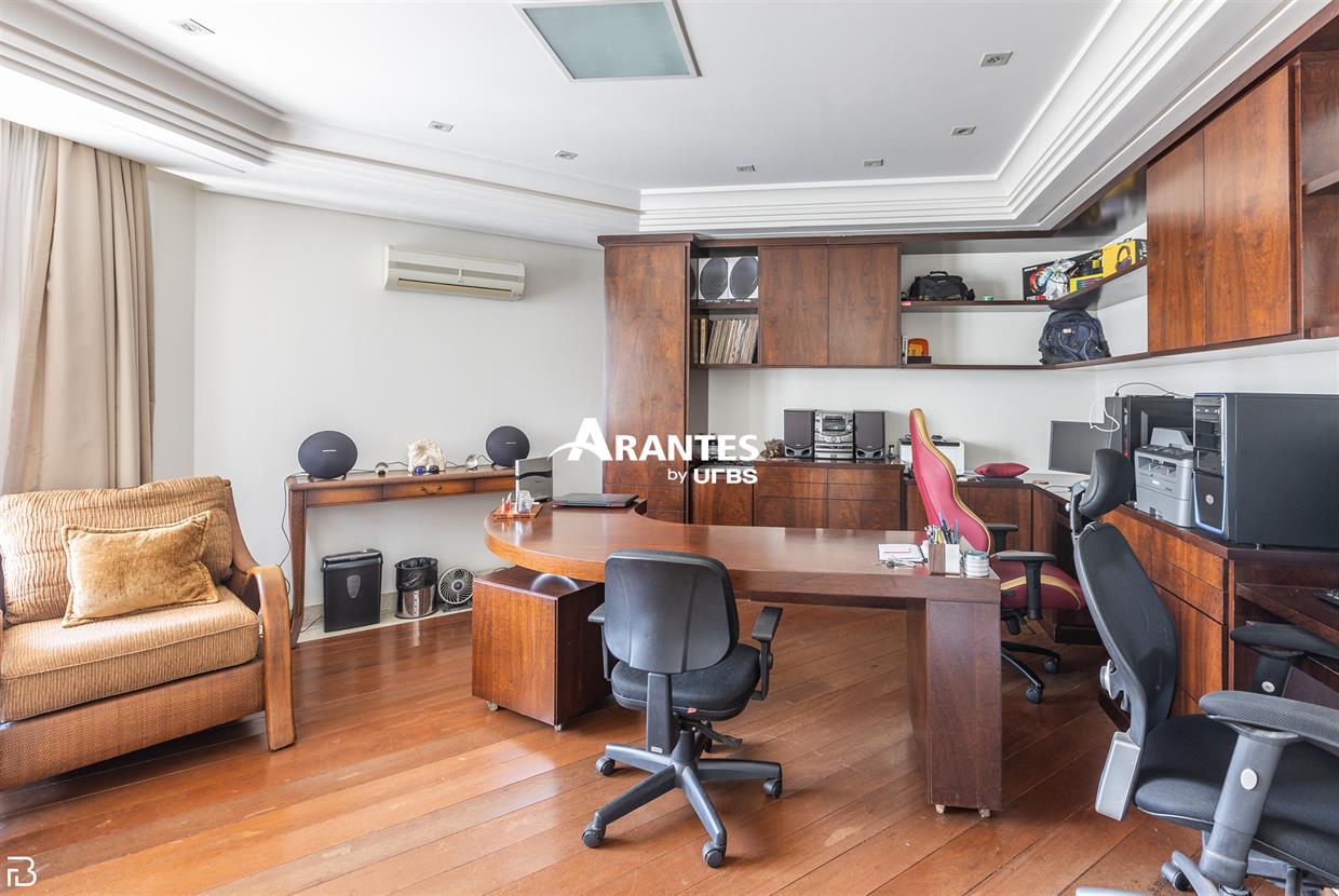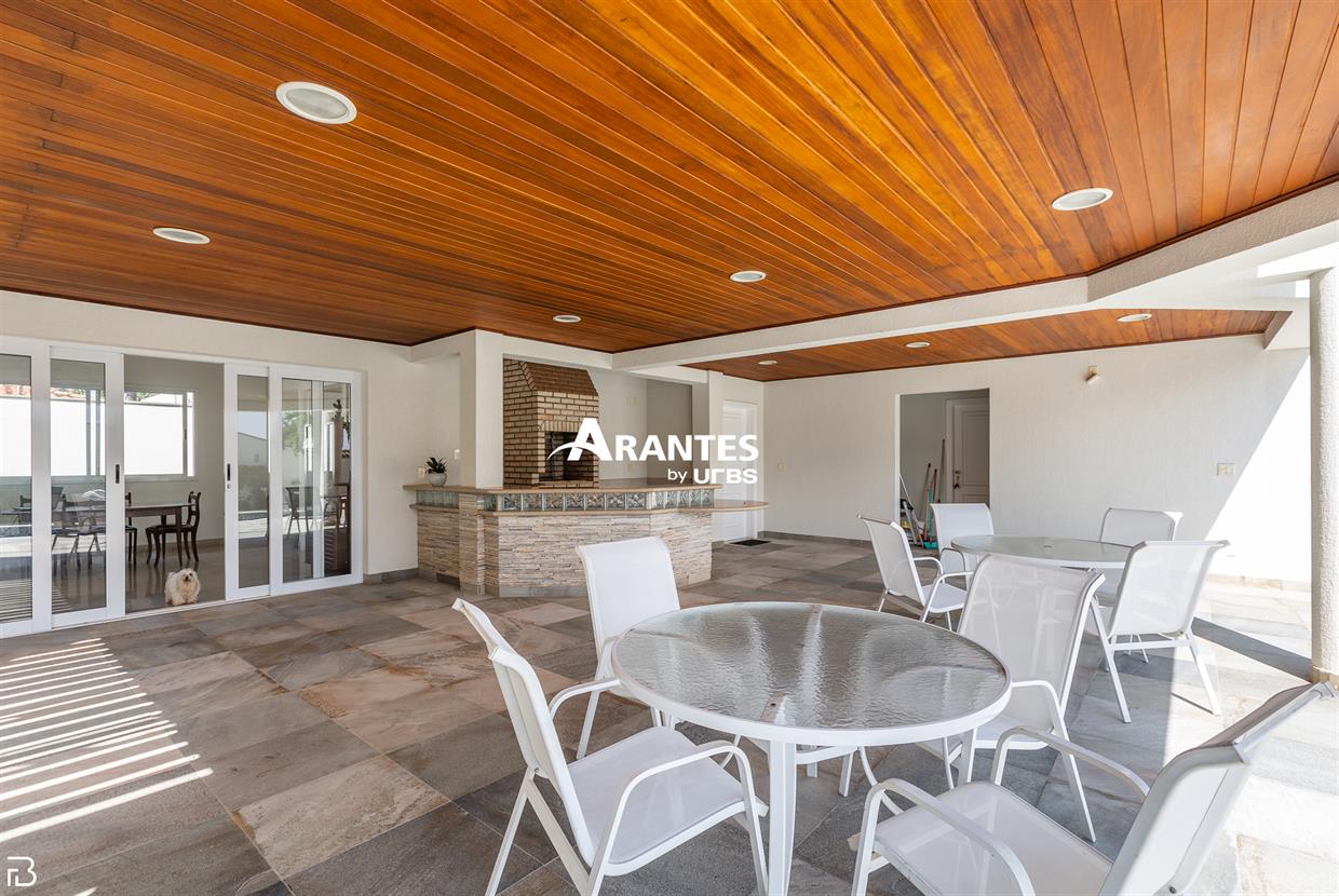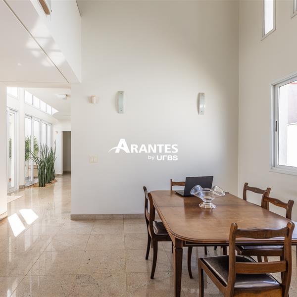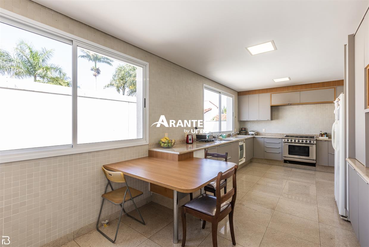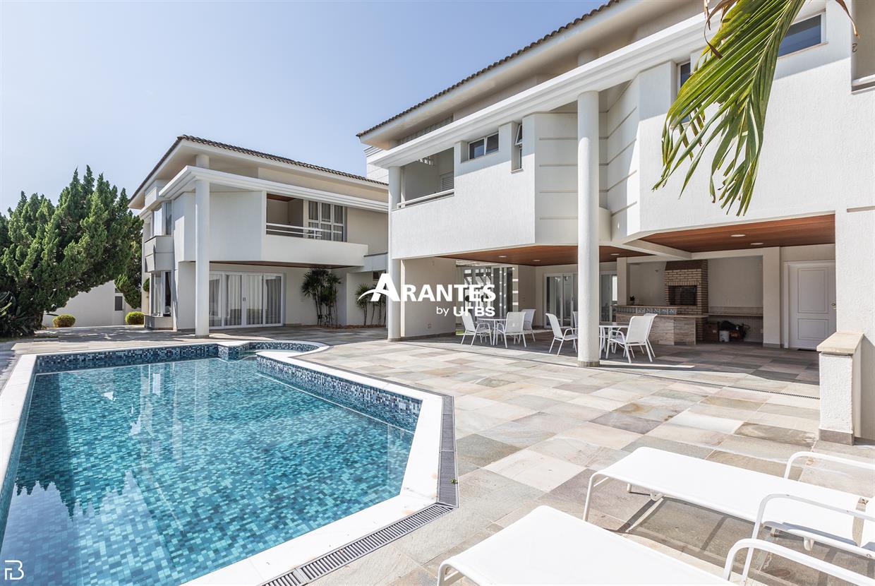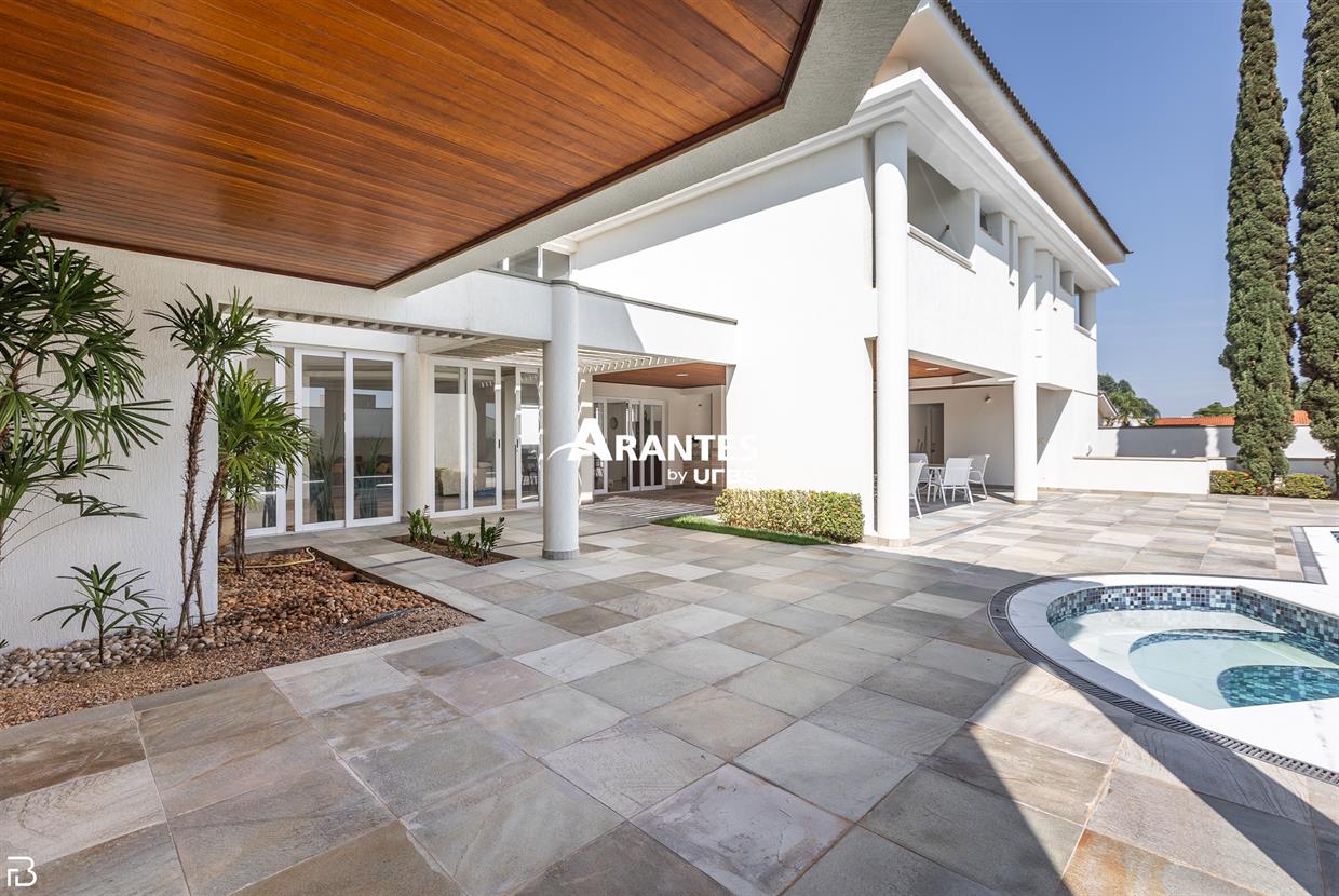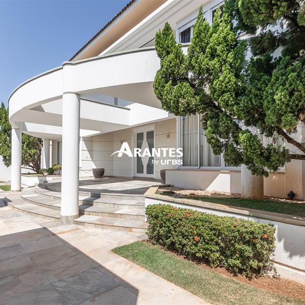 Excelente casa estilo sobrado, em alto padrão na Zona Sul de Uberlândia, com aproximadamente 850m² de área construída, em excelente acabamento, toda montada com armários planejados, luminárias e painéis, sendo o 1° piso com varanda gourmet com mais de 100m², piscina aquecida com raia, sauna para 10 pessoas, cozinha ampla com 02 despensas, área de serviço, sala de jantar, sala de apoios e mais sala em 02 ambientes, sala de tv, lavabo, escritório amplo, adega. O 2° piso com 04 suítes amplas com sacada, sendo 01 com mais de 60m² toda em granito, sala íntima, rouparia, vaga de garagem para 08 carros. Área total de 1.100m².