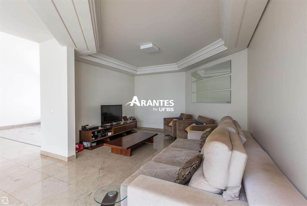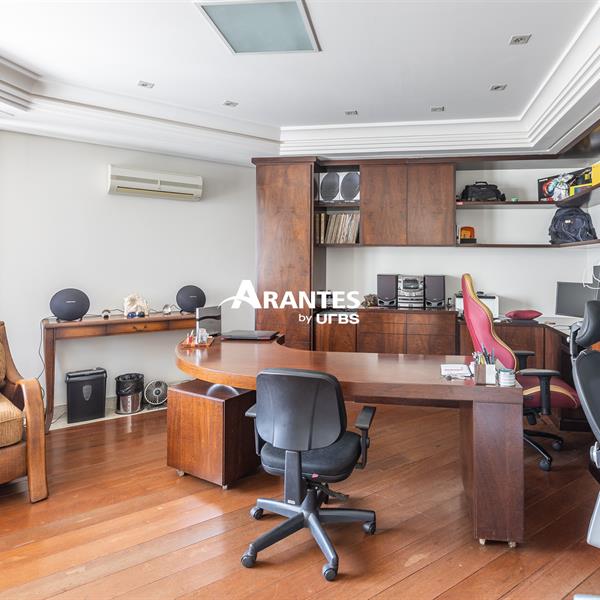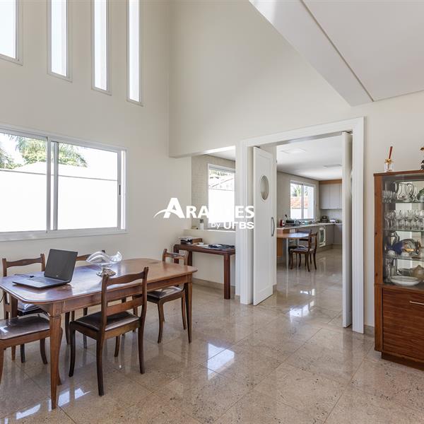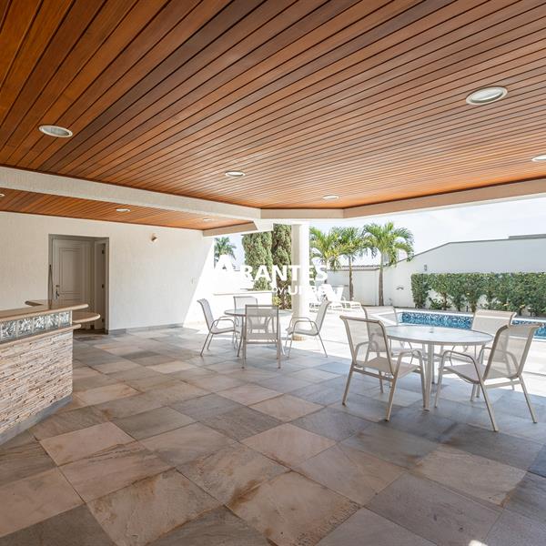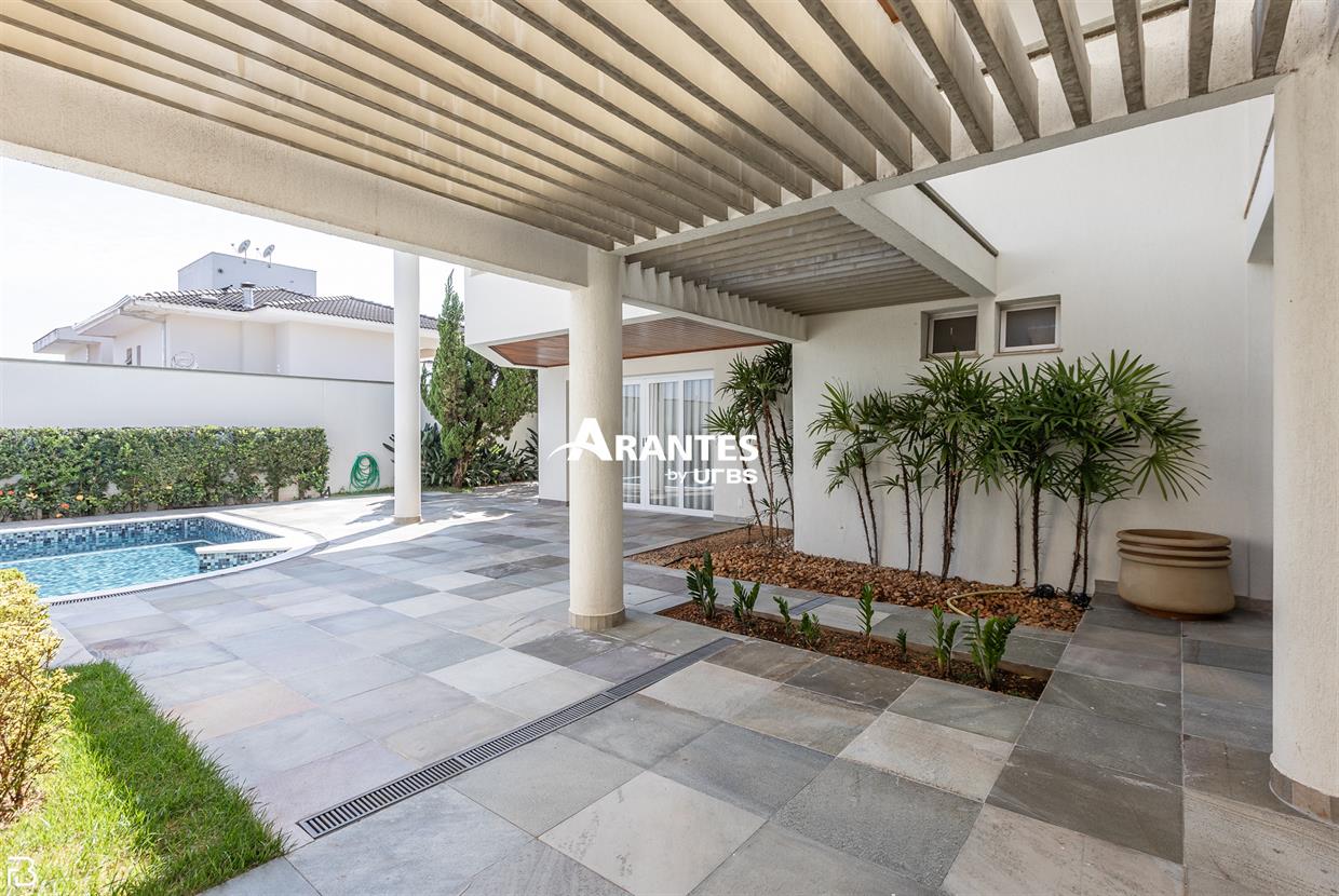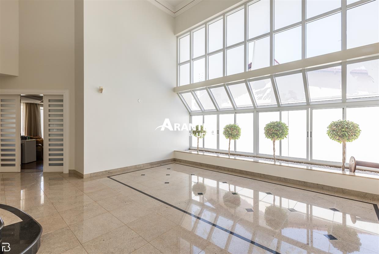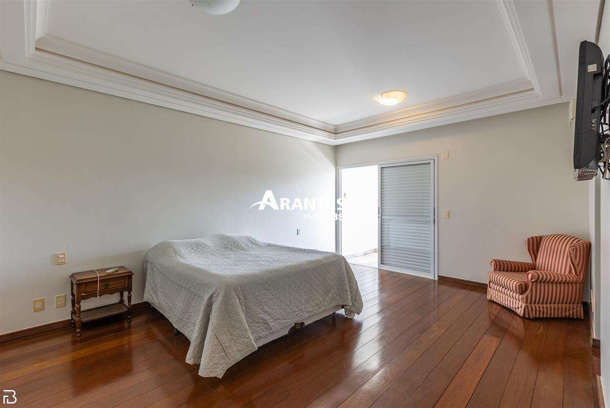 Excelente casa estilo sobrado, em alto padrão na Zona Sul de Uberlândia, com aproximadamente 850m² de área construída, em excelente acabamento, toda montada com armários planejados, luminárias e painéis, sendo o 1° piso com varanda gourmet com mais de 100m², piscina aquecida com raia, sauna para 10 pessoas, cozinha ampla com 02 despensas, área de serviço, sala de jantar, sala de apoios e mais sala em 02 ambientes, sala de tv, lavabo, escritório amplo, adega. O 2° piso com 04 suítes amplas com sacada, sendo 01 com mais de 60m² toda em granito, sala íntima, rouparia, vaga de garagem para 08 carros. Área total de 1.100m².