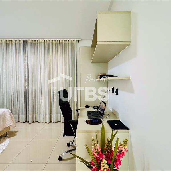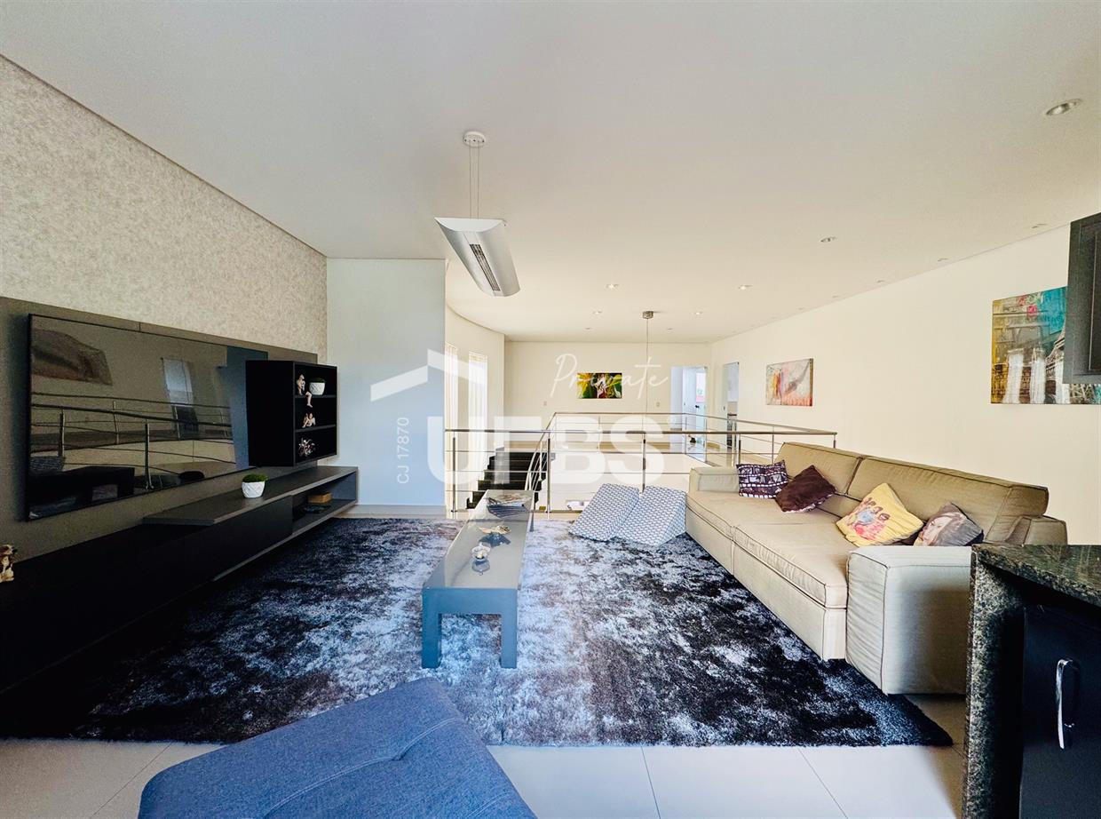 Sobrado Jardins Madri Terreno de 572,29 m2 Área construída: 479,36 m2 3 suítes plenas + sala intima Sala dois ambientes com pé direito duplo Quarto de hospedes Lavabo Elevador DPE completa Área gourmet com churrasqueira e forno de pizza Piscina Garagem para 4 carros Mobiliado